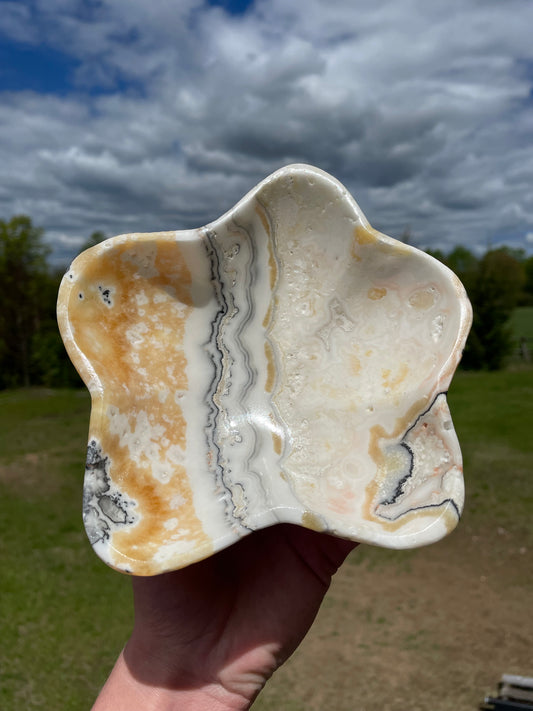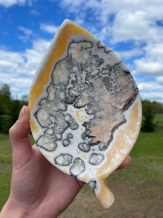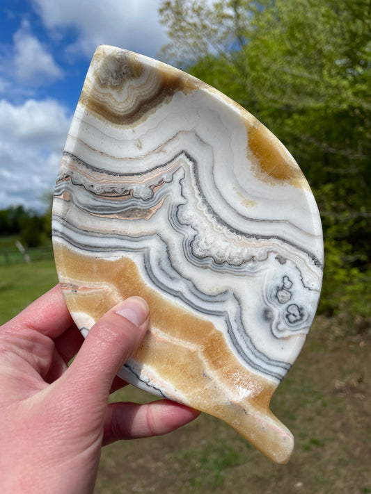 Mexican Onyx Leaf Plate, a stunning blend of natural beauty and artisan craftsmanship. Hand-carved from...