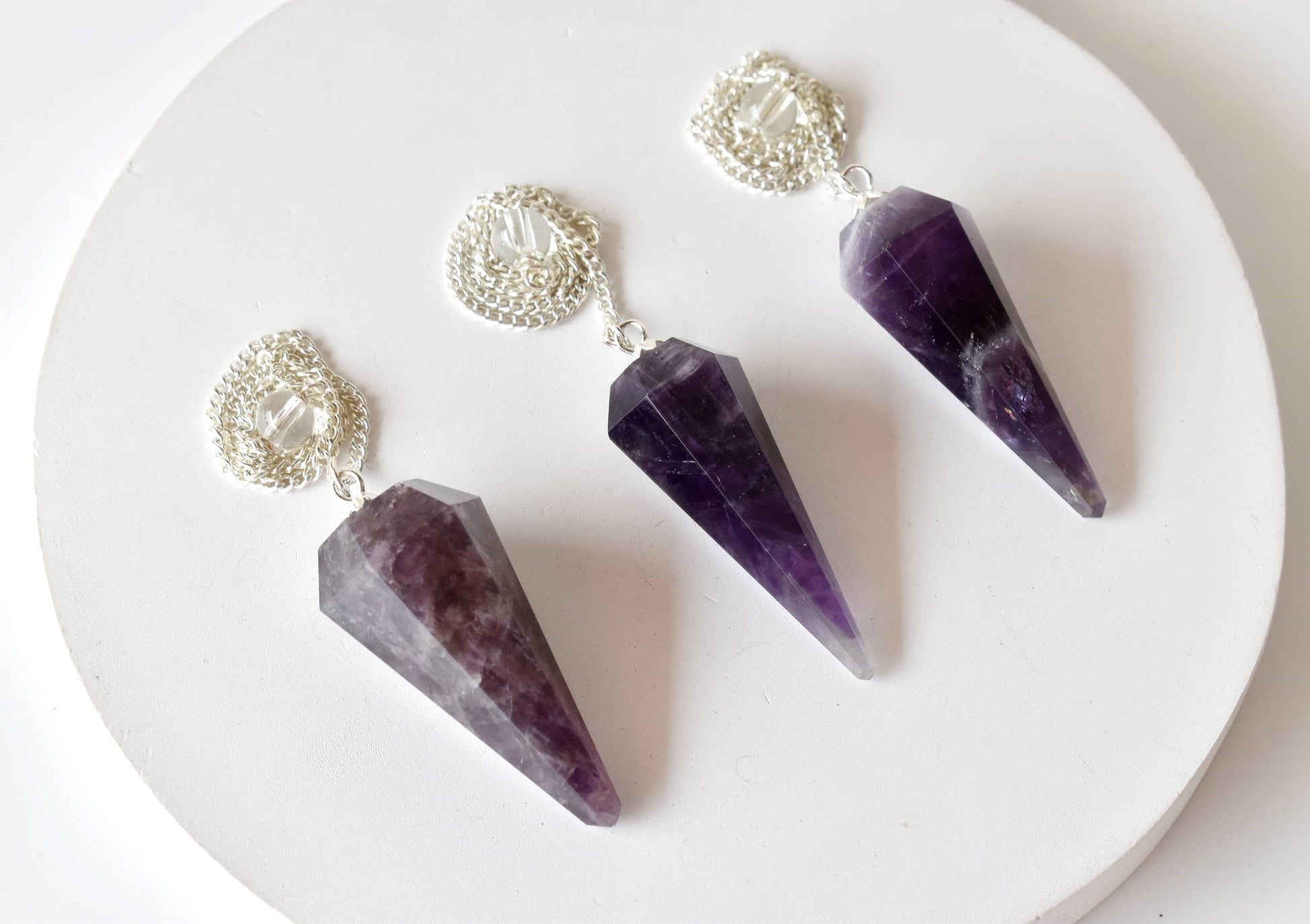 The Amethyst Faceted Pendulum is a beautiful and powerful tool for divination and spiritual healing. Made from high-quality amethyst crystal, this pendulum is perfect for those seeking clarity and guidance in their spiritual journey.