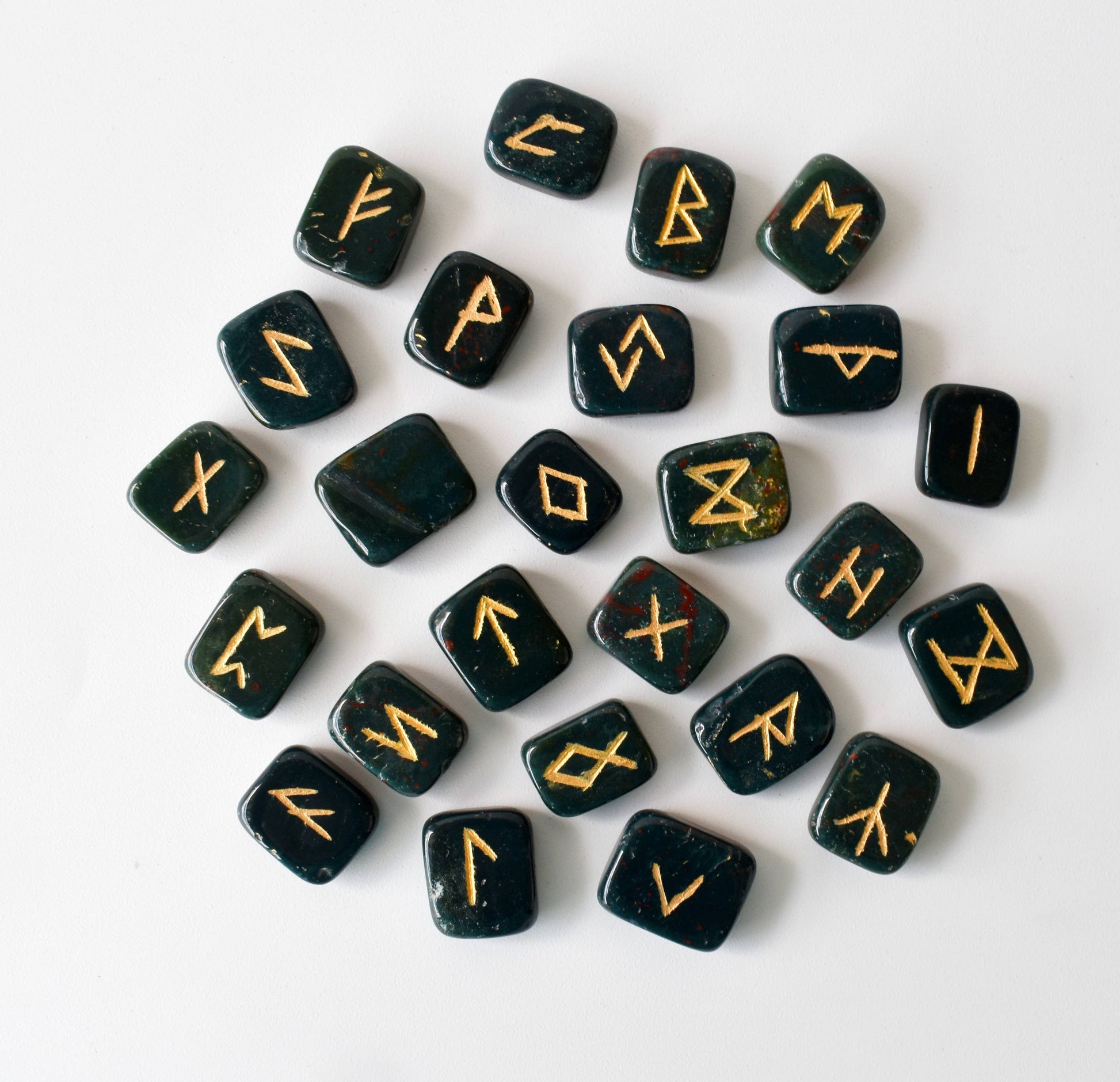 The Bloodstone Futhrak Rune Set is a powerful tool for divination and spiritual guidance. Each set includes 25 hand-carved bloodstone runes, each with a unique symbol and meaning. Bloodstone is known for its grounding and protective properties, making it the perfect material for a rune set that can help you connect with your inner wisdom and intuition.