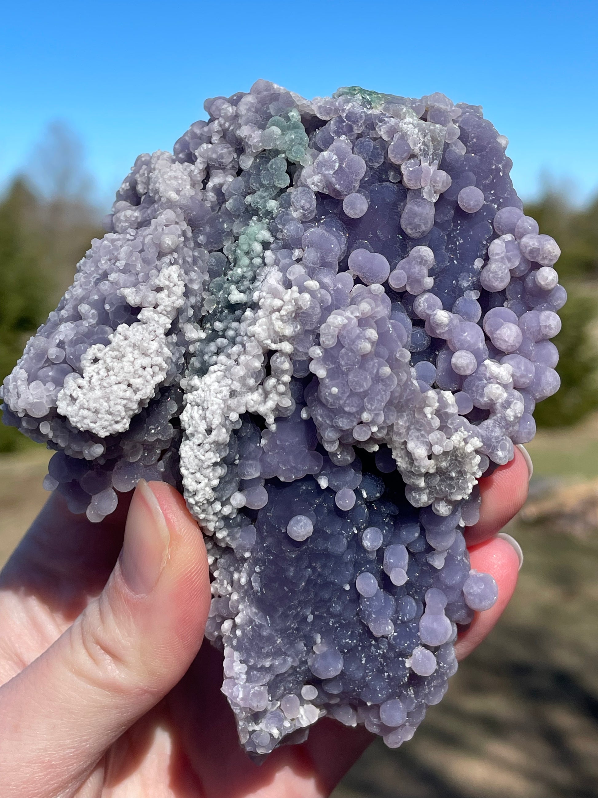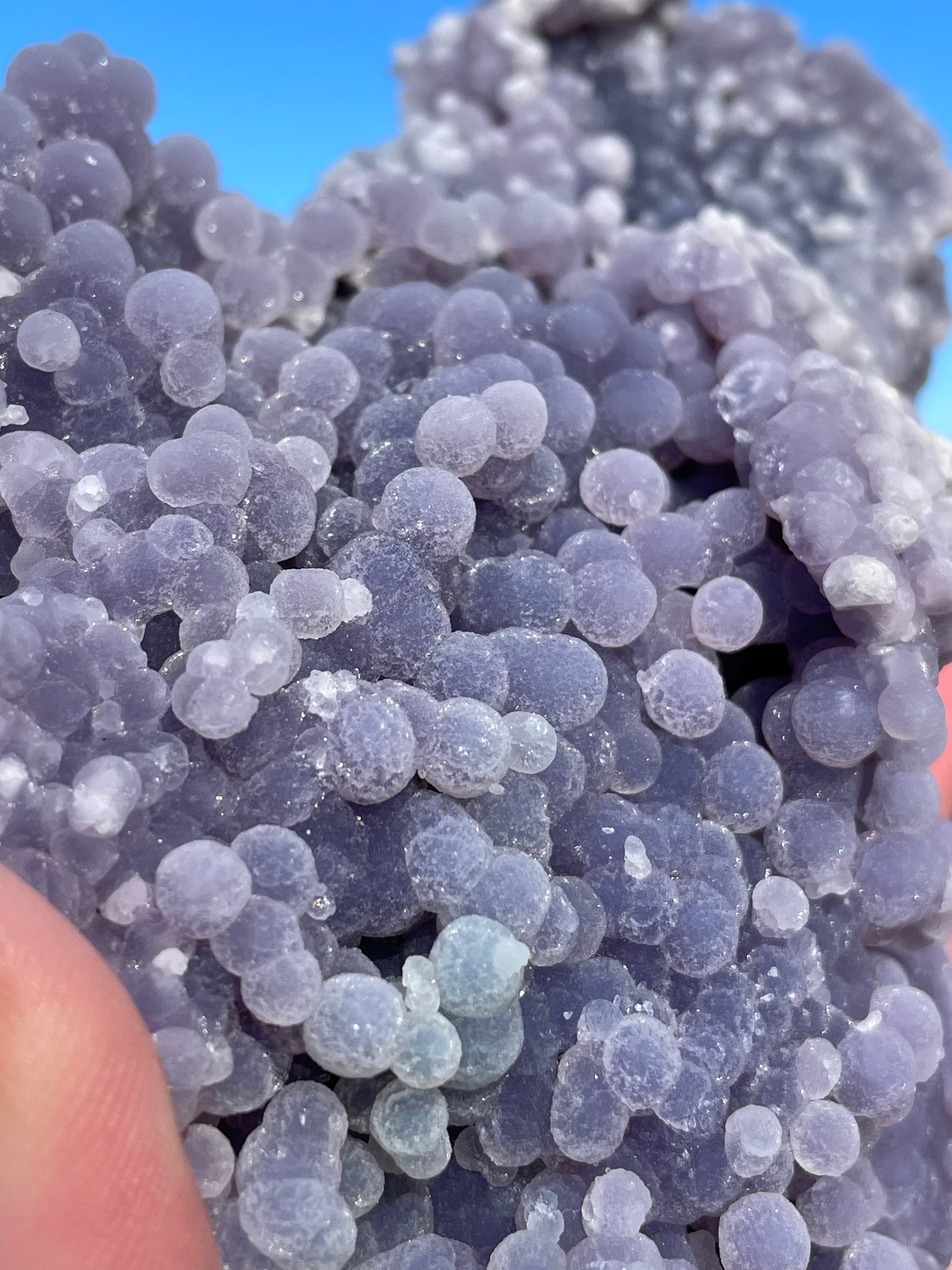 This rare crystal is sourced from Indonesia and is admired for its naturally formed clusters that resemble bunches of grapes. It is considered a high-vibration metaphysical stone for connecting with higher realms.