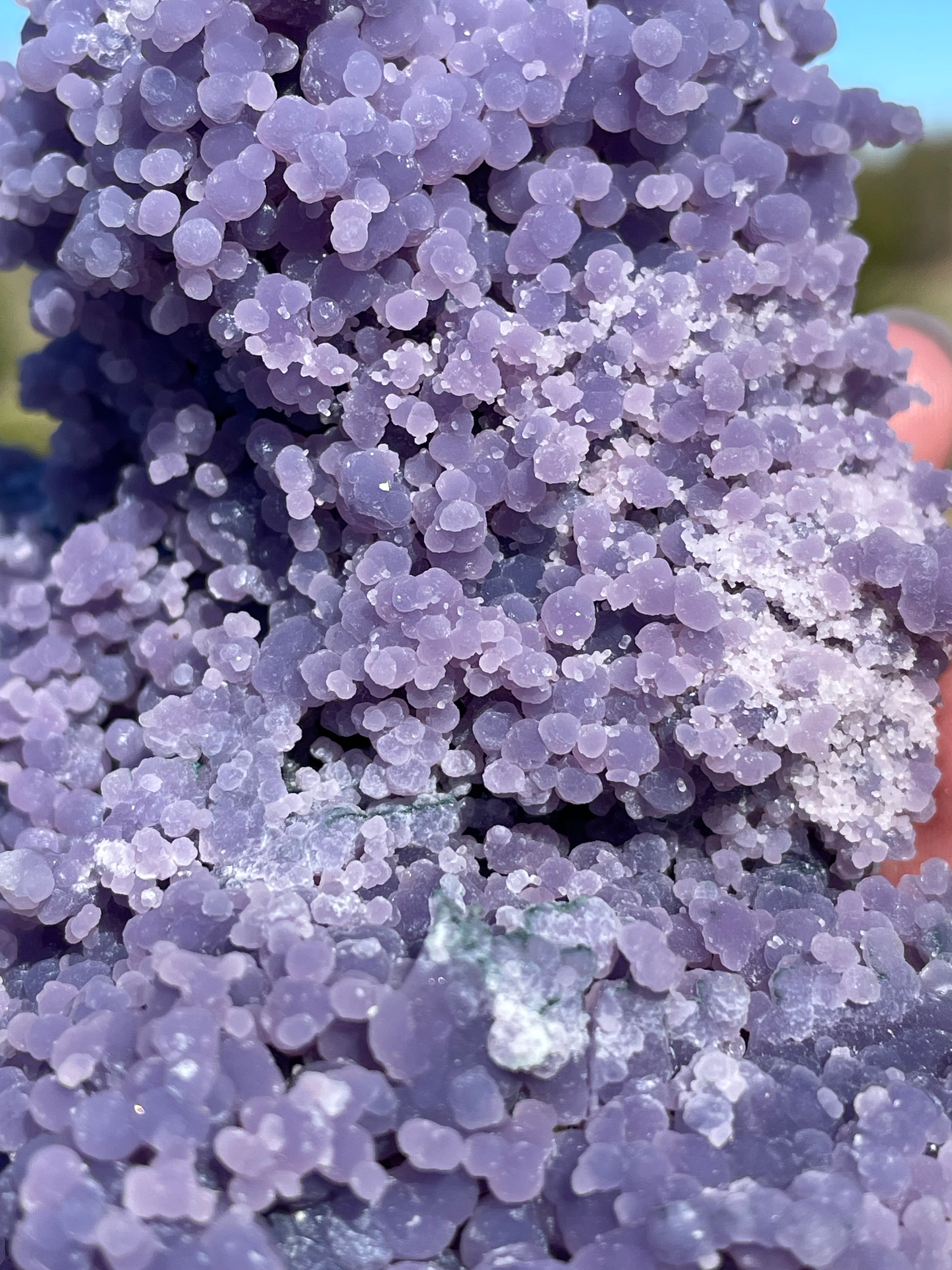 Grape Agate features botryoidal clusters in lavender, violet, and deep purple shades. Its surfaces often sparkle under light, making each cluster visually enchanting.