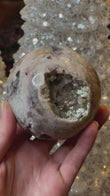 Pink Amethyst clusters and spheres display soft blush to rosy hues with sparkling crystalline surfaces. Some pieces show subtle white or clear quartz inclusions, enhancing their natural beauty.