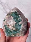 Clean carefully with lukewarm water and a soft cloth. Keep out of direct sunlight to avoid fading. Energetic cleansing: place under moonlight, recharge with a selenite plate, or use gentle palo santo smoke.
