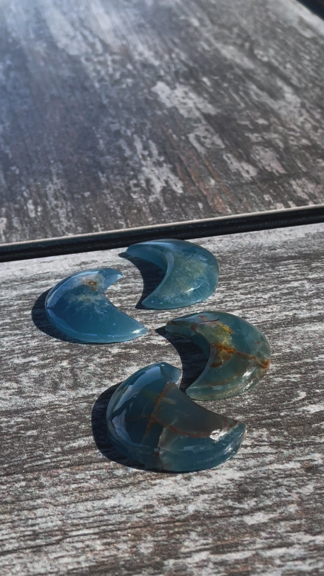 Lemurian Aquatine Calcite Moon (Flat Back)