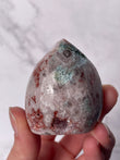 Clean carefully with lukewarm water and a soft cloth. Keep out of direct sunlight to avoid fading. Energetic cleansing: place under moonlight, recharge with a selenite plate, or use gentle palo santo smoke.