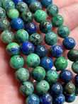 Deep blue polished 8 mm beads, sometimes blended with green malachite.