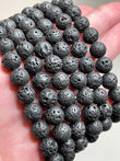 Matte 8 mm beads in deep black with a naturally porous texture, lightweight yet strong.