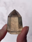 Features polished tower points in golden yellow to honey tones, often with natural internal inclusions. The tower shape directs energy upward, making it ideal for intention setting and display.