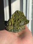 Typically dark green to blackish-green, Epidote forms in prismatic crystals or raw clusters with a vitreous luster. Some pieces display moss-like patterns and shimmering surfaces.