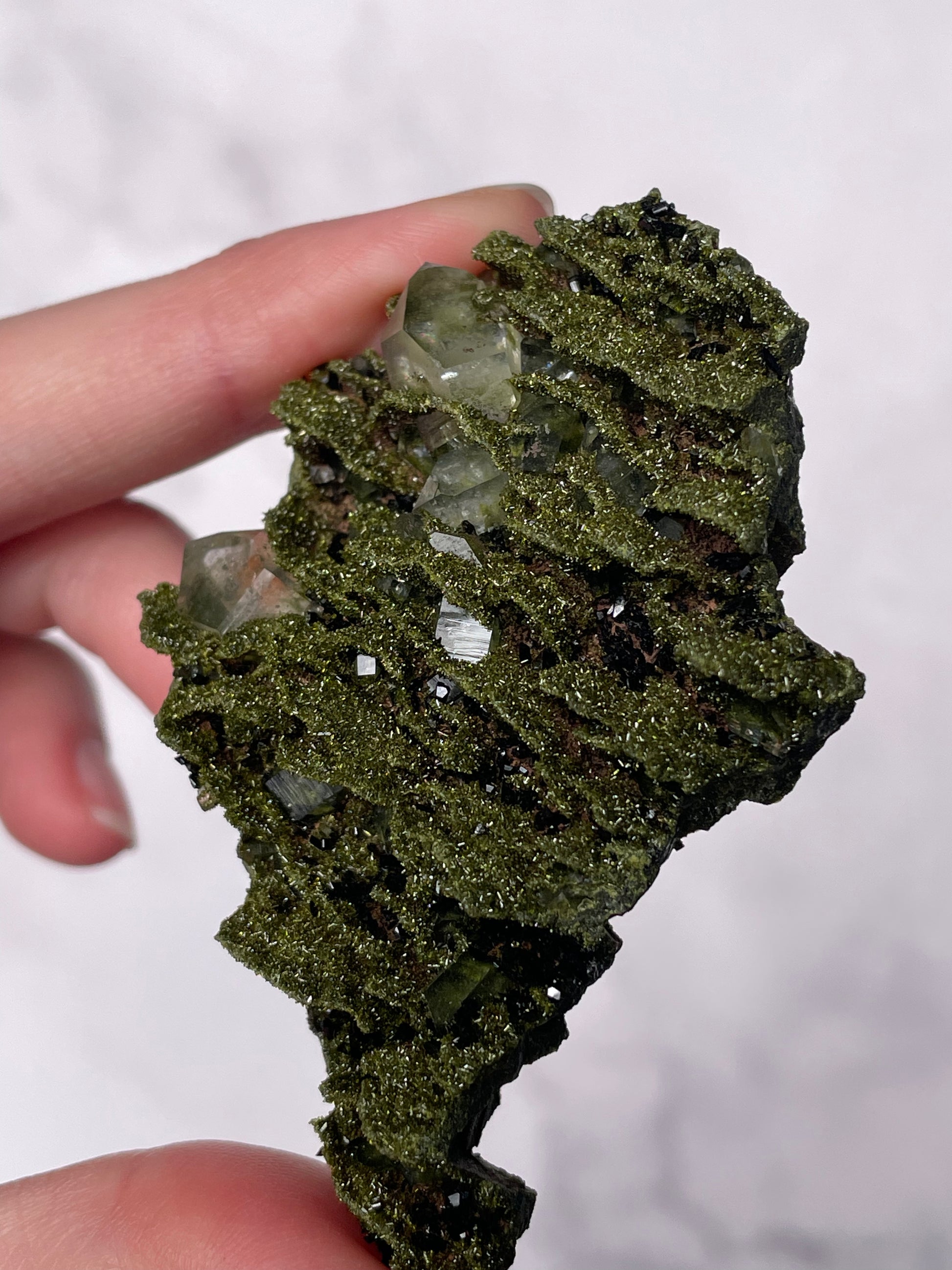 Epidote is a powerful crystal of release, growth, and transformation. It encourages the letting go of negativity, enhances optimism, and supports emotional healing while amplifying personal power and spiritual development.