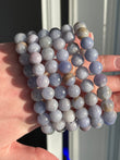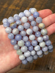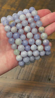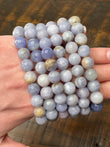 Polished 8 mm beads in soft lilac to pinkish tones, shifting color under UV light.