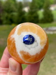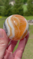 Deep black polished stone, sometimes banded with white layers, commonly carved into spheres and cabochons.