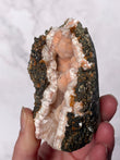 Sourced from India, Orange Thomsonite forms within volcanic basalt alongside other zeolite minerals. Indian Thomsonite is valued for its rarity, grounding energy, and heart-centered healing properties.