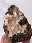 Displays warm peach to orange tones with creamy white zeolite formations. Pieces often show botryoidal textures, soft crystal sprays, and natural matrix contrast, making each specimen visually unique.