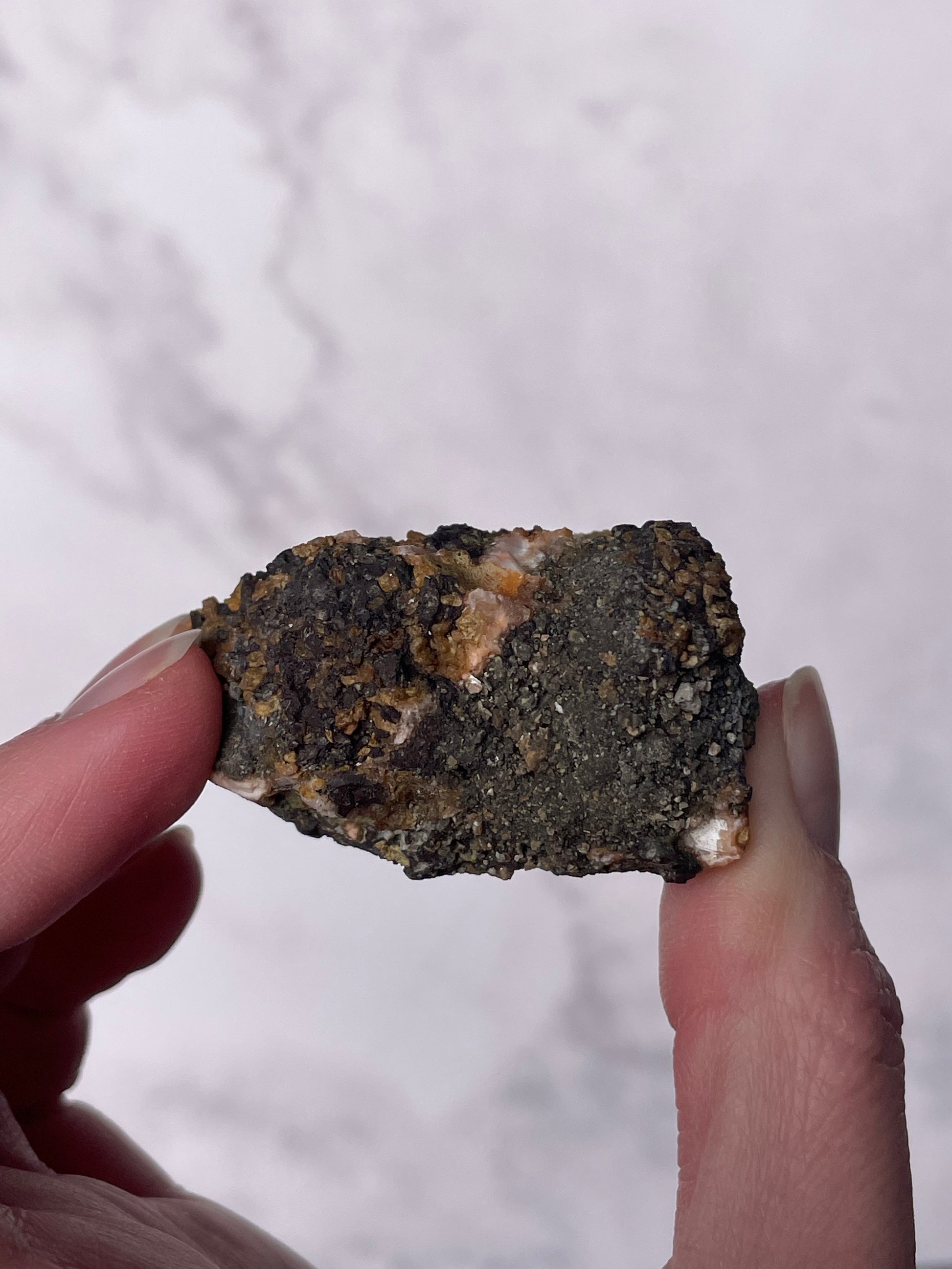 Sourced from India, Orange Thomsonite forms within volcanic basalt alongside other zeolite minerals. Indian Thomsonite is valued for its rarity, grounding energy, and heart-centered healing properties.