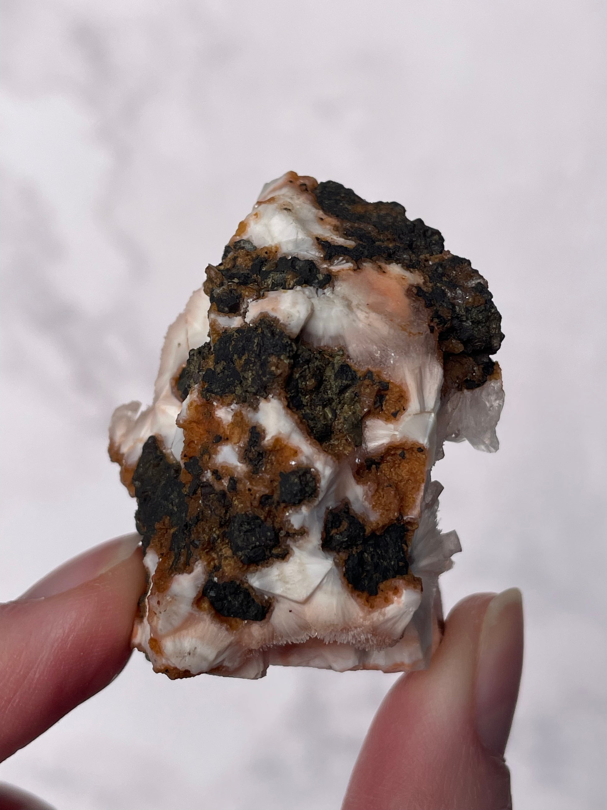 Handle with care as Thomsonite is a delicate zeolite mineral. Avoid water, salt, and harsh chemicals.