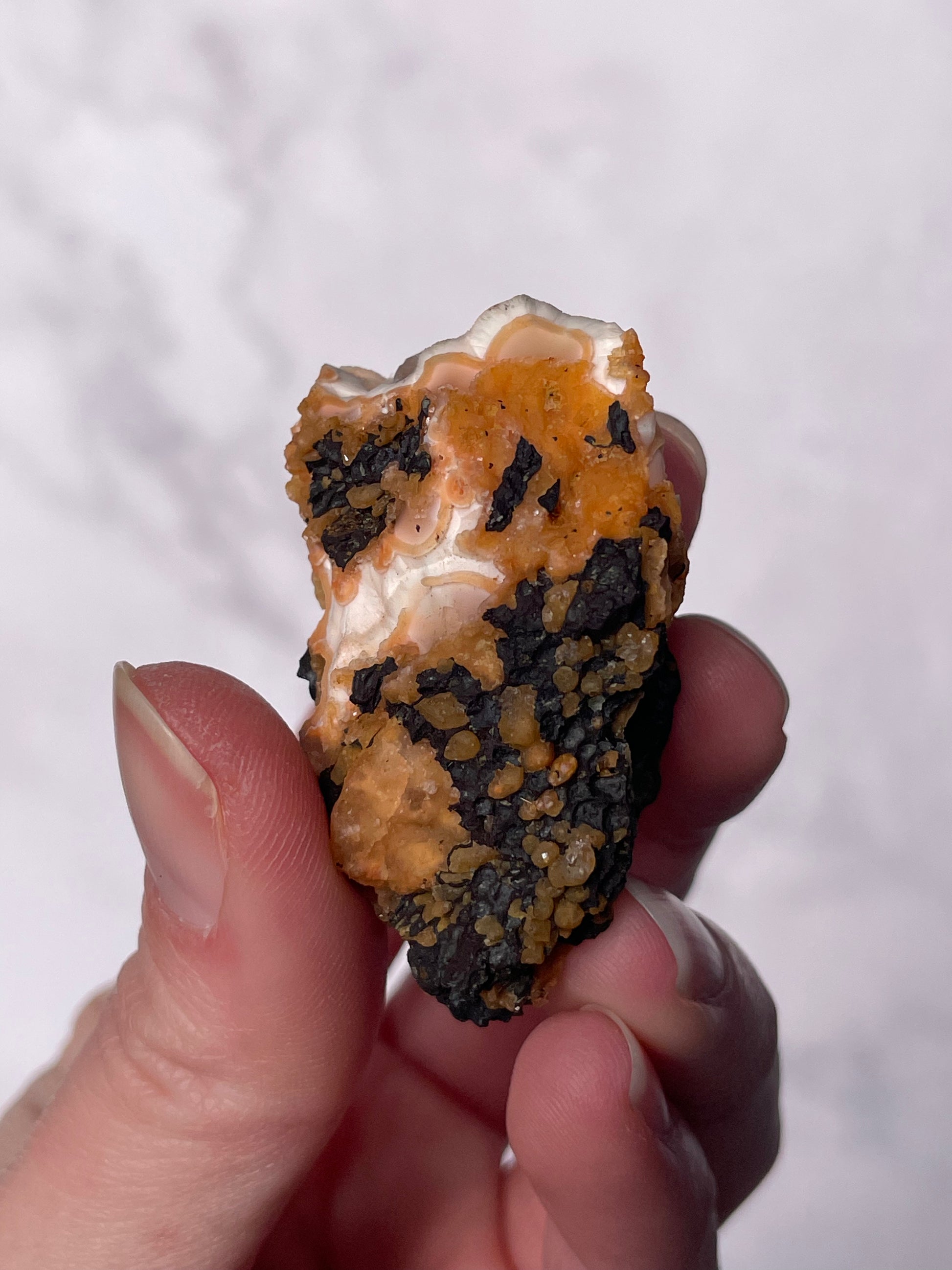 Orange Thomsonite is a nurturing crystal that supports emotional healing, inner strength, and gentle grounding. It encourages self-acceptance, resilience, and calm confidence while soothing emotional overwhelm.