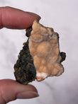 Displays warm peach to orange tones with creamy white zeolite formations. Pieces often show botryoidal textures, soft crystal sprays, and natural matrix contrast, making each specimen visually unique.
