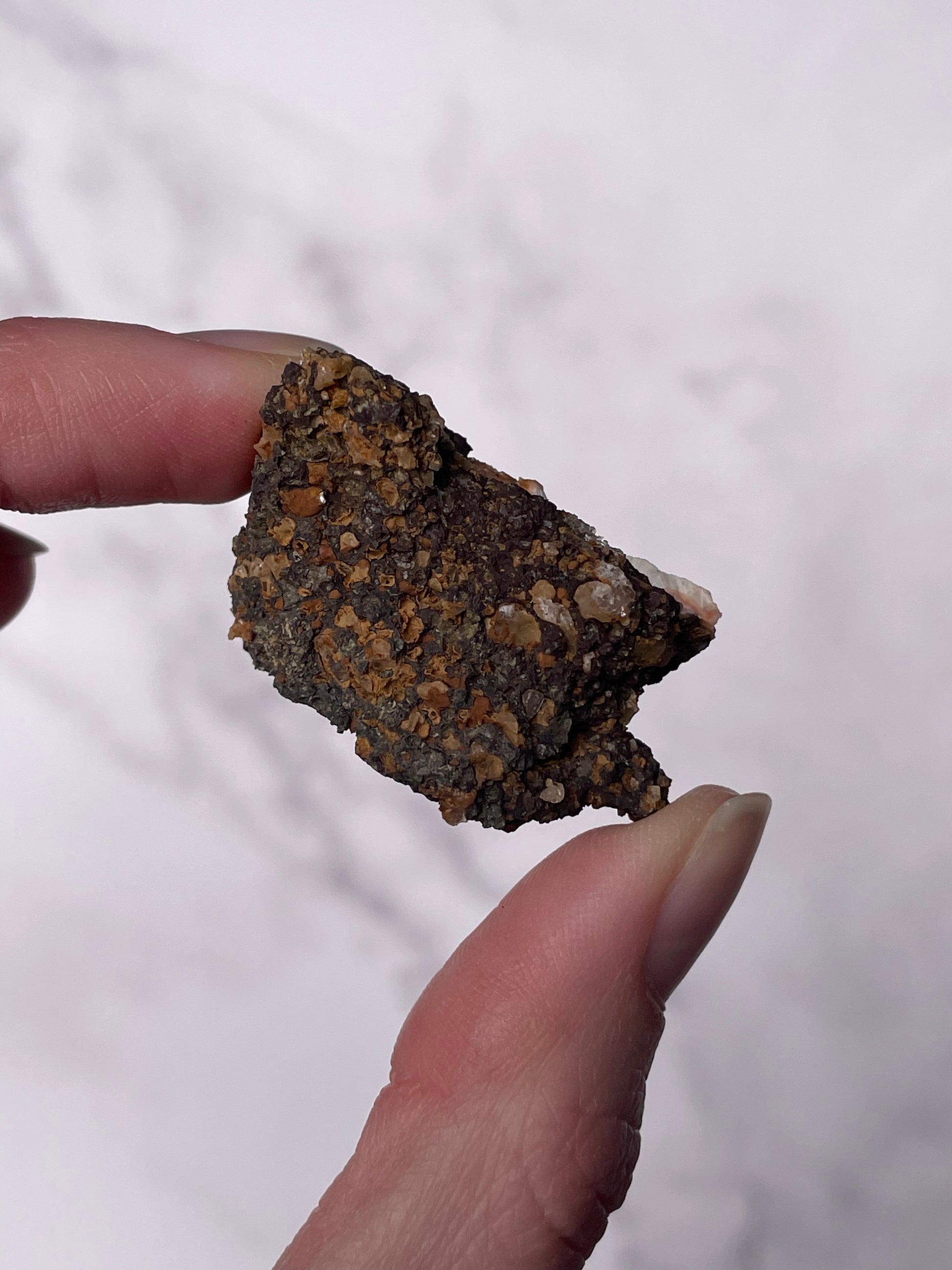 Sourced from India, Orange Thomsonite forms within volcanic basalt alongside other zeolite minerals. Indian Thomsonite is valued for its rarity, grounding energy, and heart-centered healing properties.
