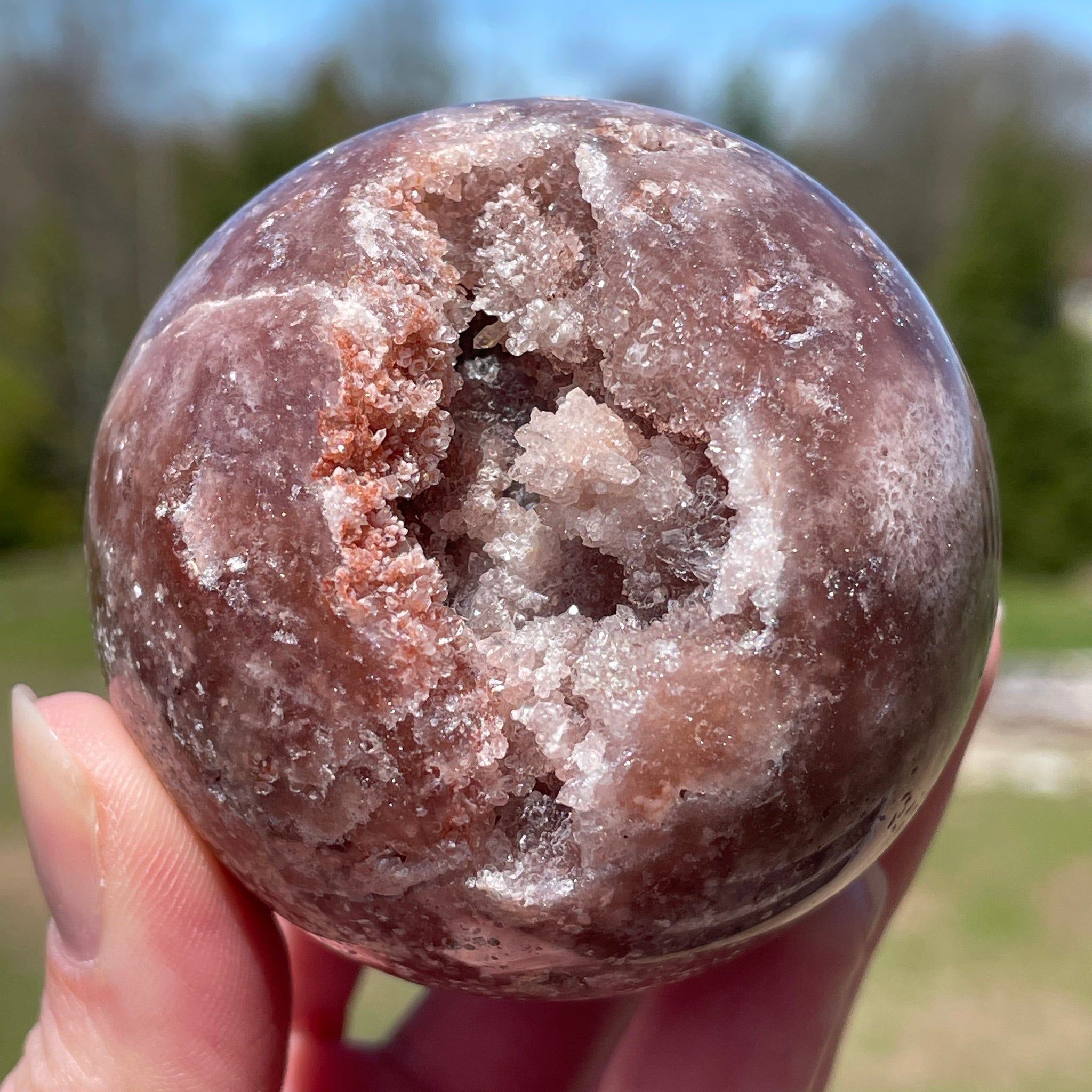 Pink Amethyst Sphere: Radiant crystal ball with delicate pink tones