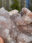 Pink Amethyst clusters and spheres display soft blush to rosy hues with sparkling crystalline surfaces. Some pieces show subtle white or clear quartz inclusions, enhancing their natural beauty.