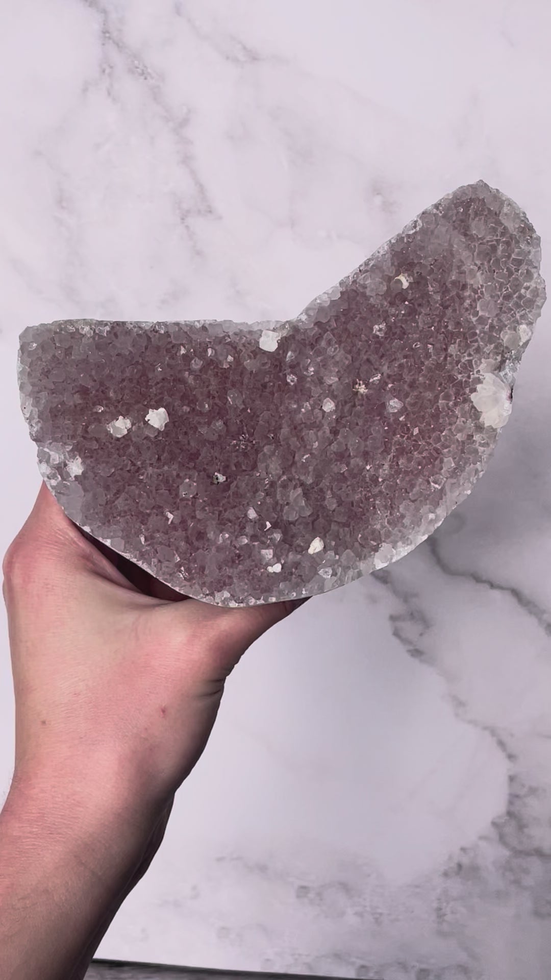 This variety comes from India, where chalcedony has long been valued for its protective and harmonizing properties. Pink forms are especially prized for their soft, comforting vibration aligned with the heart chakra.