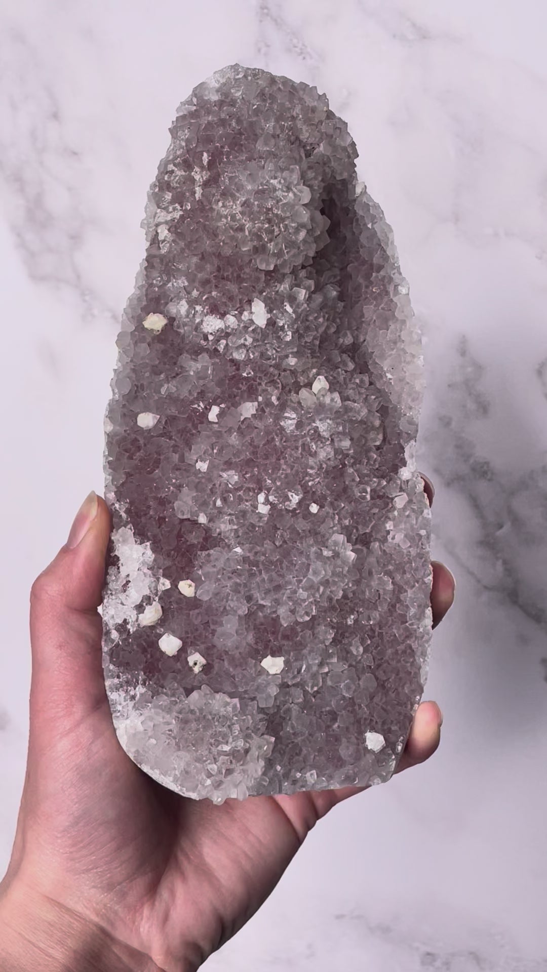 This variety comes from India, where chalcedony has long been valued for its protective and harmonizing properties. Pink forms are especially prized for their soft, comforting vibration aligned with the heart chakra.