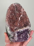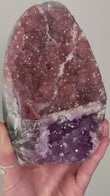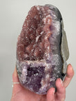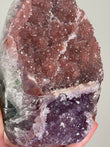 Rainbow Amethyst typically appears as clusters or points in deep violet to lavender shades with shimmering rainbow flashes visible when turned in the light. Each piece is one-of-a-kind with dazzling crystal faces.