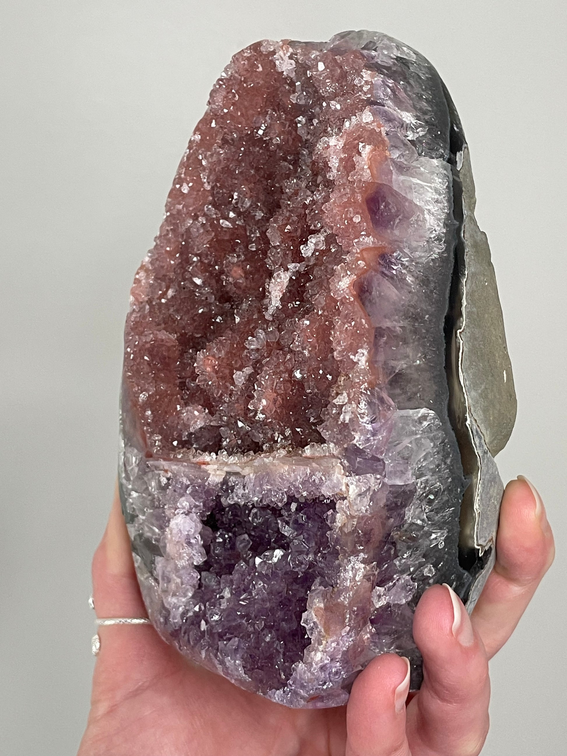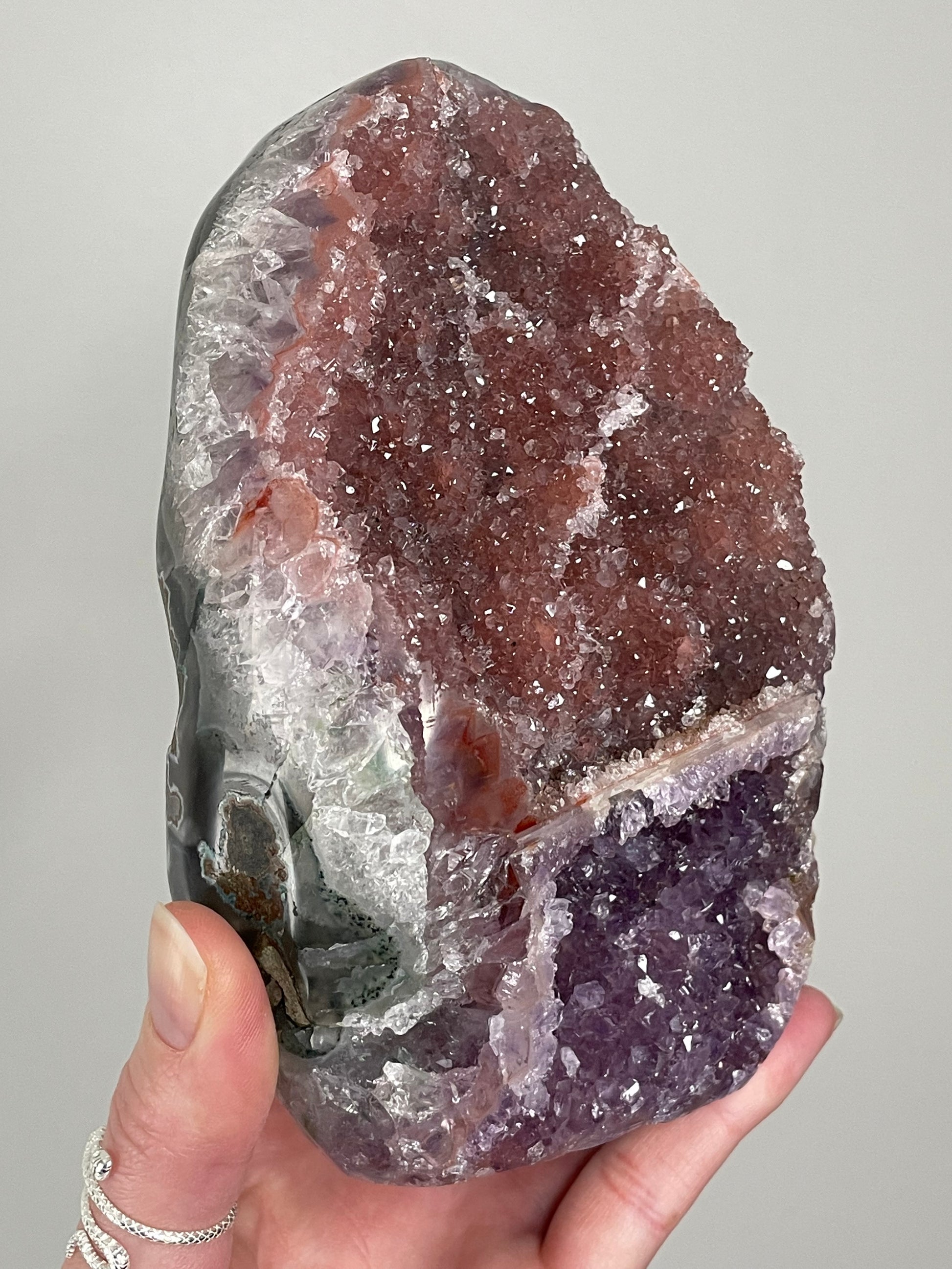 Found in Brazil and other amethyst-rich regions, this unique variety often forms when natural fractures reflect light or when tiny inclusions create an iridescent play of color. Throughout history, amethyst has symbolized wisdom and spiritual clarity, and the rainbow effect amplifies its uplifting energy.