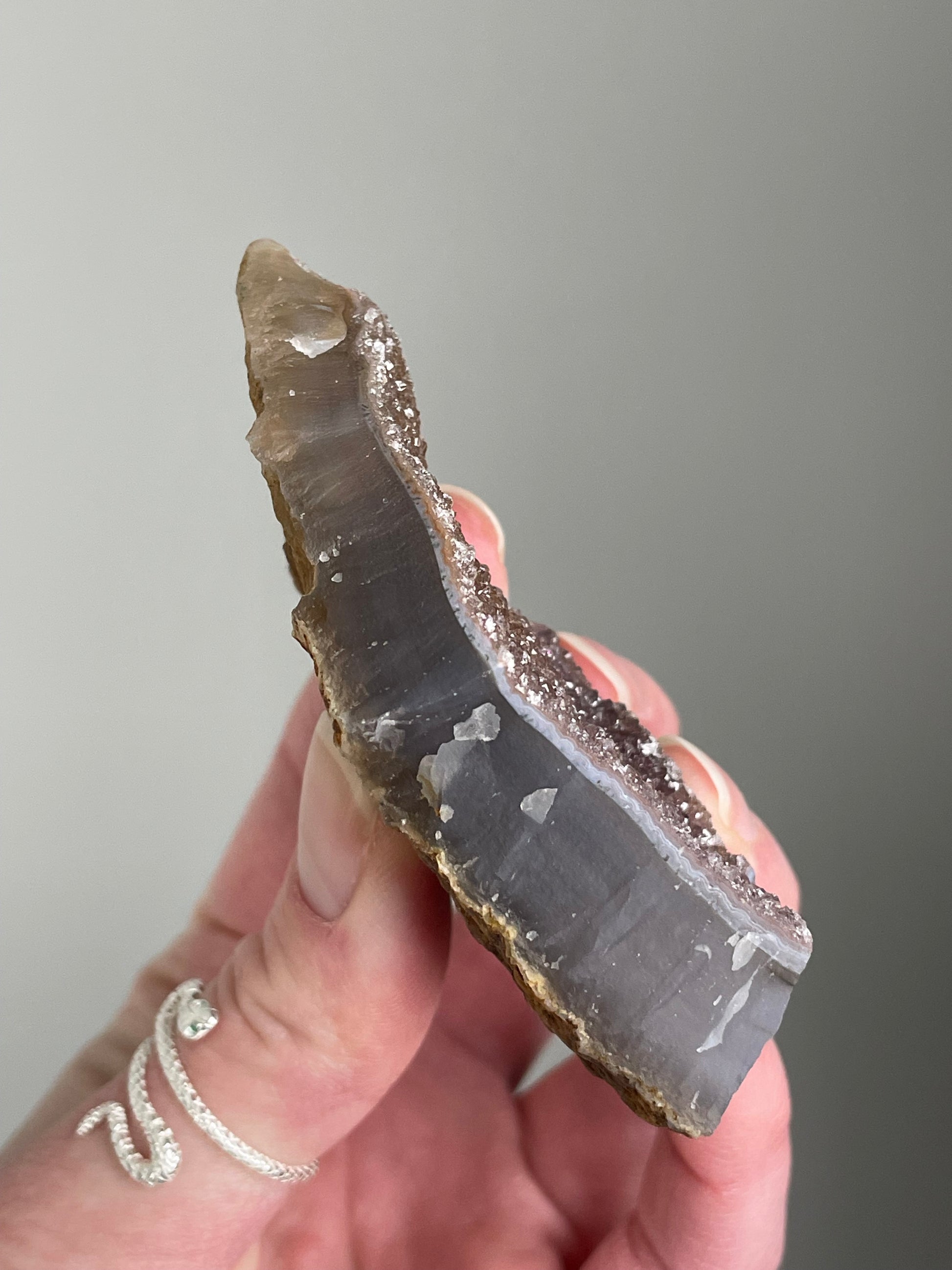 Found in Brazil and other amethyst-rich regions, this unique variety often forms when natural fractures reflect light or when tiny inclusions create an iridescent play of color. Throughout history, amethyst has symbolized wisdom and spiritual clarity, and the rainbow effect amplifies its uplifting energy.