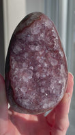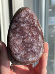 Clean gently with lukewarm water and a soft cloth. Avoid harsh sunlight, which may fade the purple tones. Cleansing methods: recharge under moonlight, place on a selenite plate, or cleanse with palo santo or sound vibration.