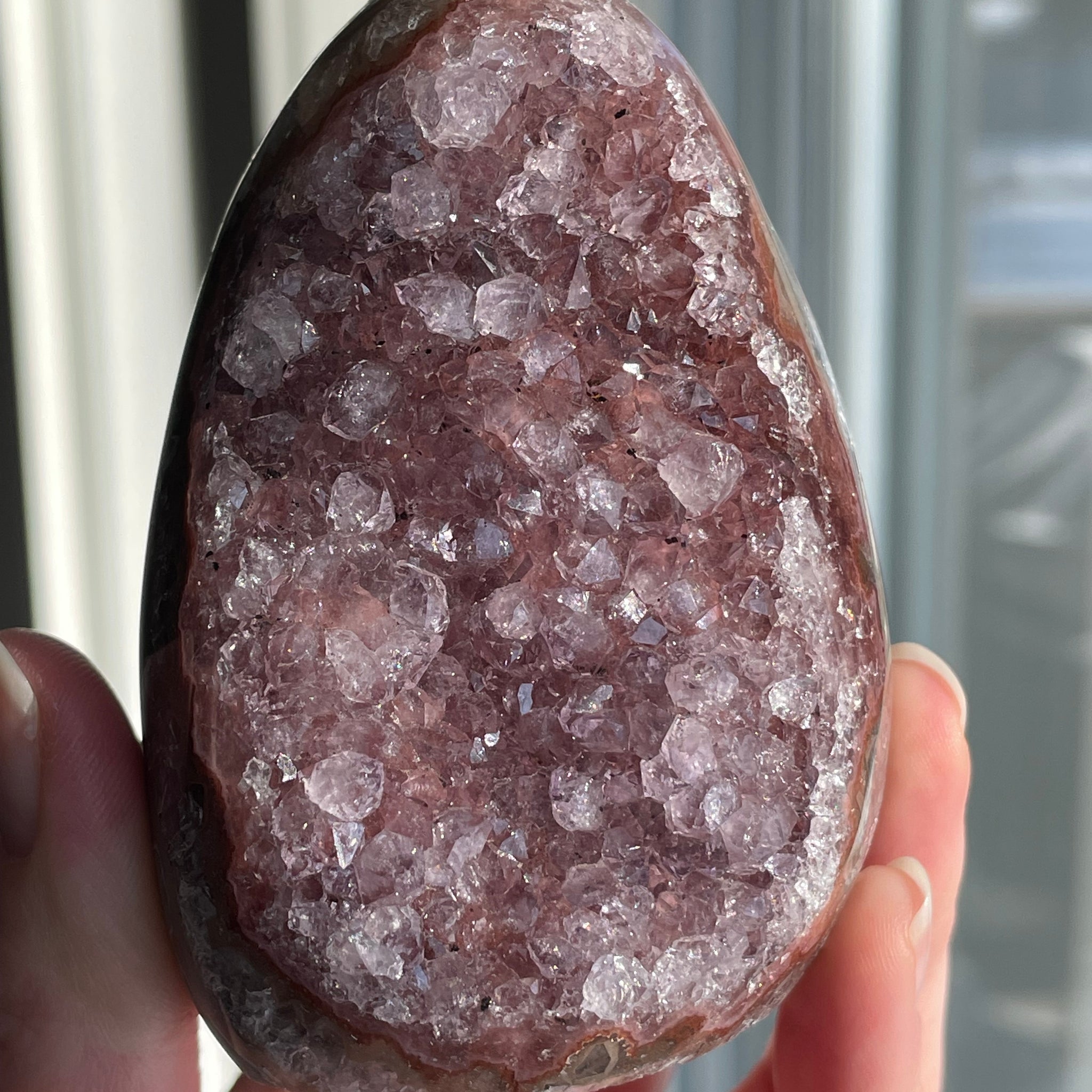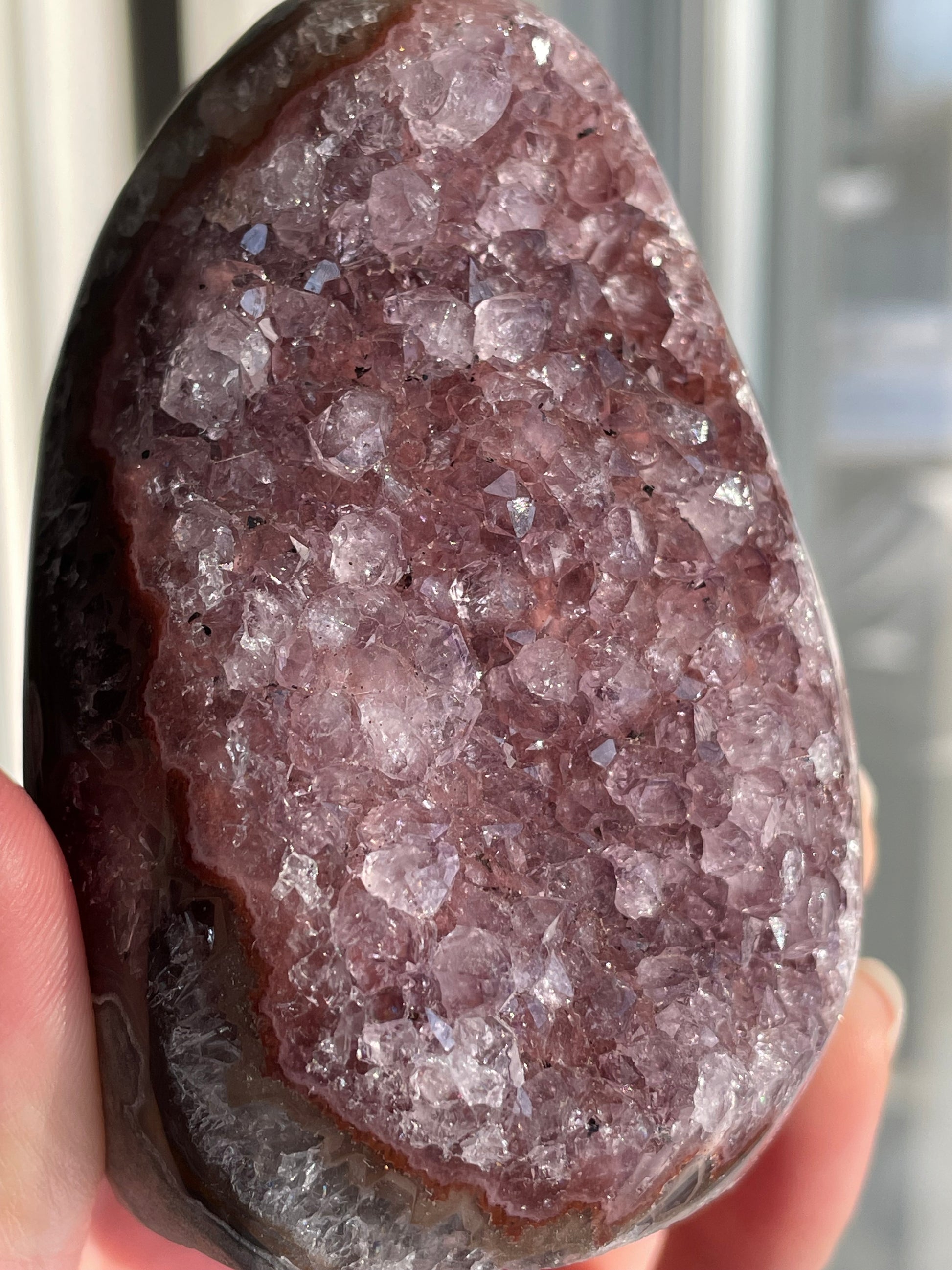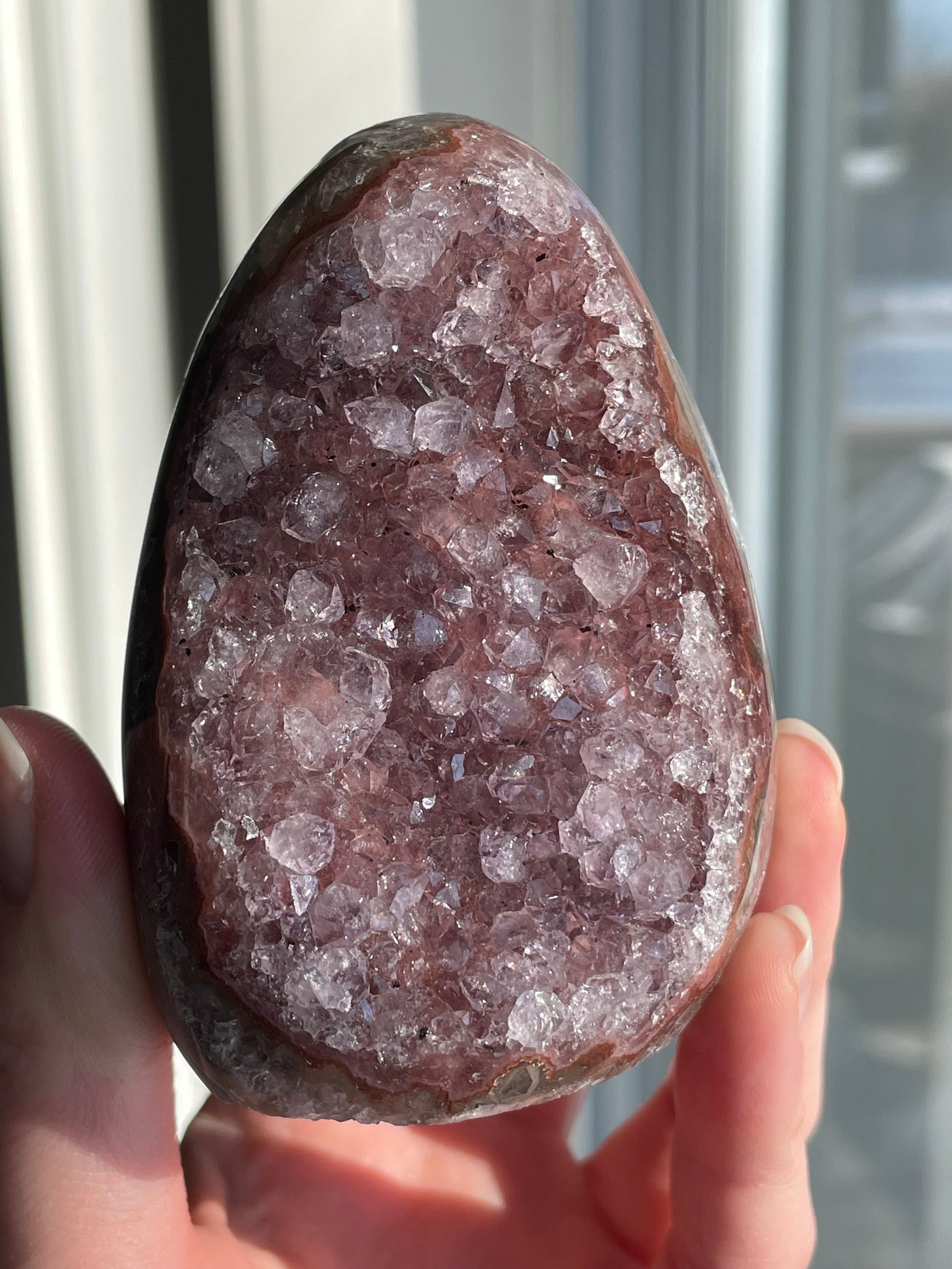 Found in Brazil and other amethyst-rich regions, this unique variety often forms when natural fractures reflect light or when tiny inclusions create an iridescent play of color. Throughout history, amethyst has symbolized wisdom and spiritual clarity, and the rainbow effect amplifies its uplifting energy.