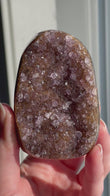 Rainbow Amethyst typically appears as clusters or points in deep violet to lavender shades with shimmering rainbow flashes visible when turned in the light. Each piece is one-of-a-kind with dazzling crystal faces.