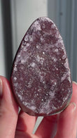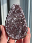Clean gently with lukewarm water and a soft cloth. Avoid harsh sunlight, which may fade the purple tones. Cleansing methods: recharge under moonlight, place on a selenite plate, or cleanse with palo santo or sound vibration.