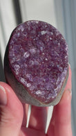 Clean gently with lukewarm water and a soft cloth. Avoid harsh sunlight, which may fade the purple tones. Cleansing methods: recharge under moonlight, place on a selenite plate, or cleanse with palo santo or sound vibration.