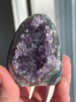 Clean gently with lukewarm water and a soft cloth. Avoid harsh sunlight, which may fade the purple tones. Cleansing methods: recharge under moonlight, place on a selenite plate, or cleanse with palo santo or sound vibration.
