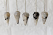 The pendulum is attached to a silver chain with a small crystal bead at the end for easy handling. Use it for divination, dowsing, or simply as a beautiful piece of jewelry.