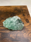 A raw Fluorite crystal in it's natural state, featuring a mix of translucent green and purple hues, reflecting the captivating beauty of this mineral's unique formations.