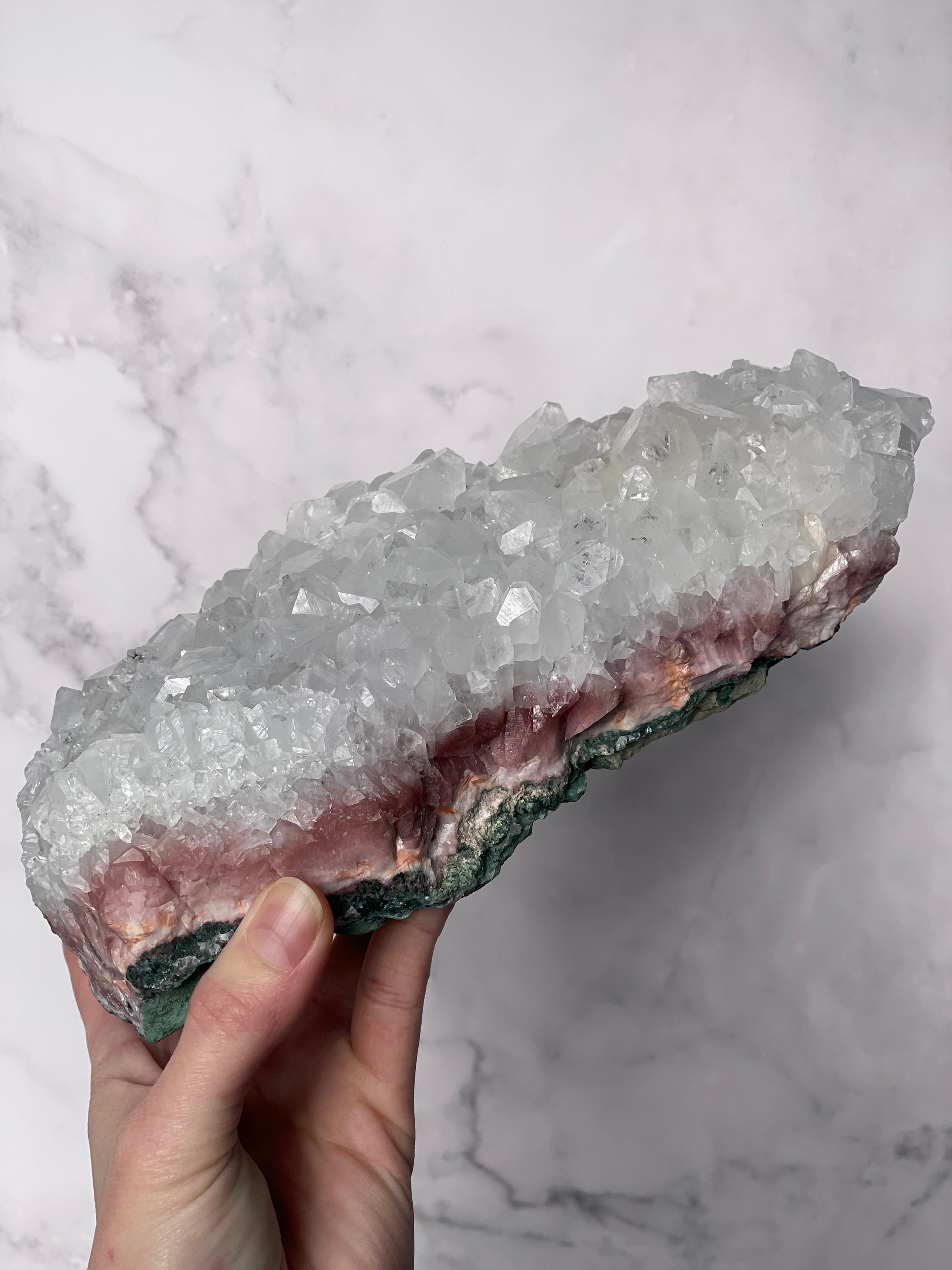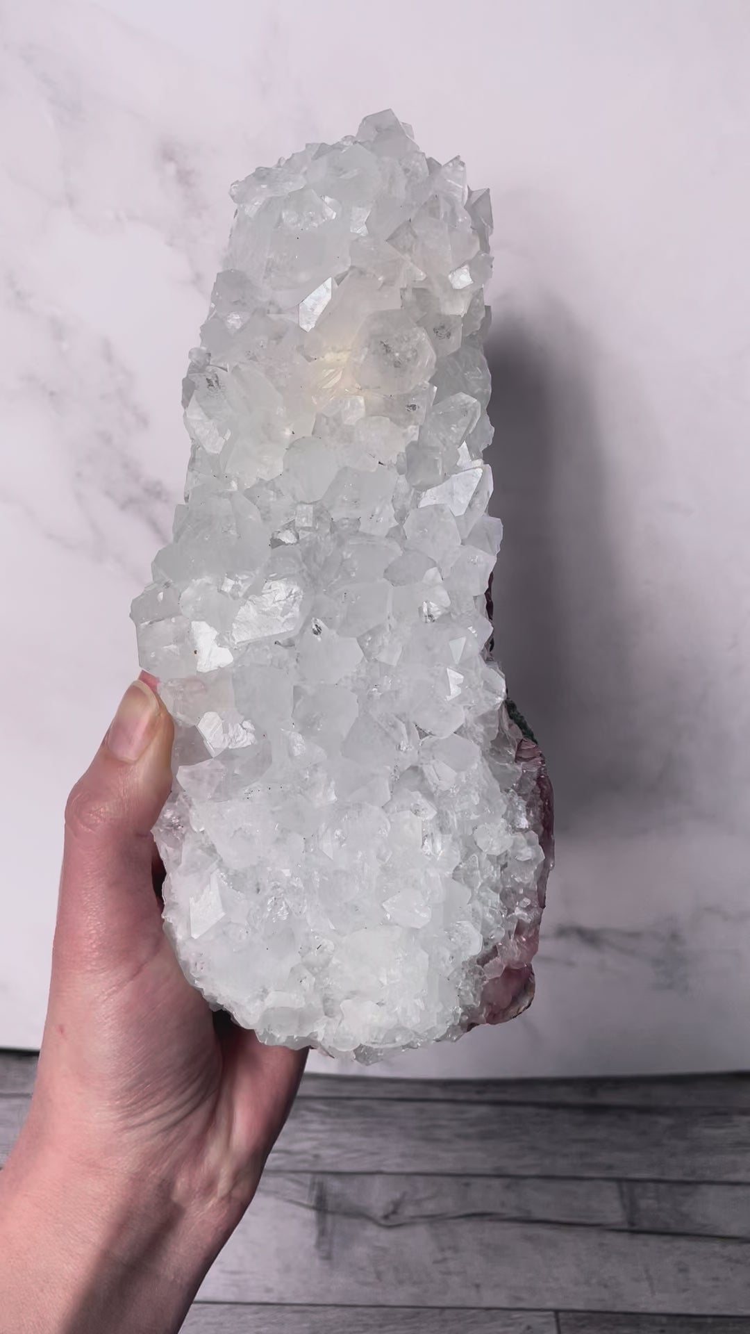 Sourced from India, Red Apophyllite forms within basalt matrix alongside other zeolite minerals. Indian Apophyllite is highly regarded for its exceptional crystal structure and strong energetic resonance, especially in heart and root chakra work.