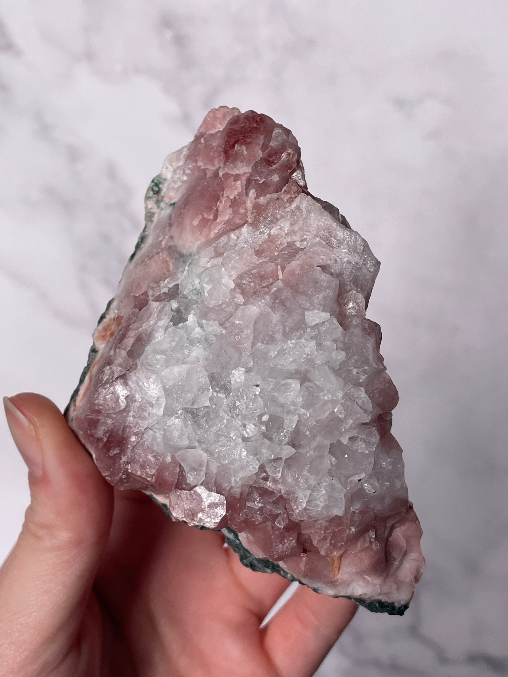 Sourced from India, Red Apophyllite forms within basalt matrix alongside other zeolite minerals. Indian Apophyllite is highly regarded for its exceptional crystal structure and strong energetic resonance, especially in heart and root chakra work.