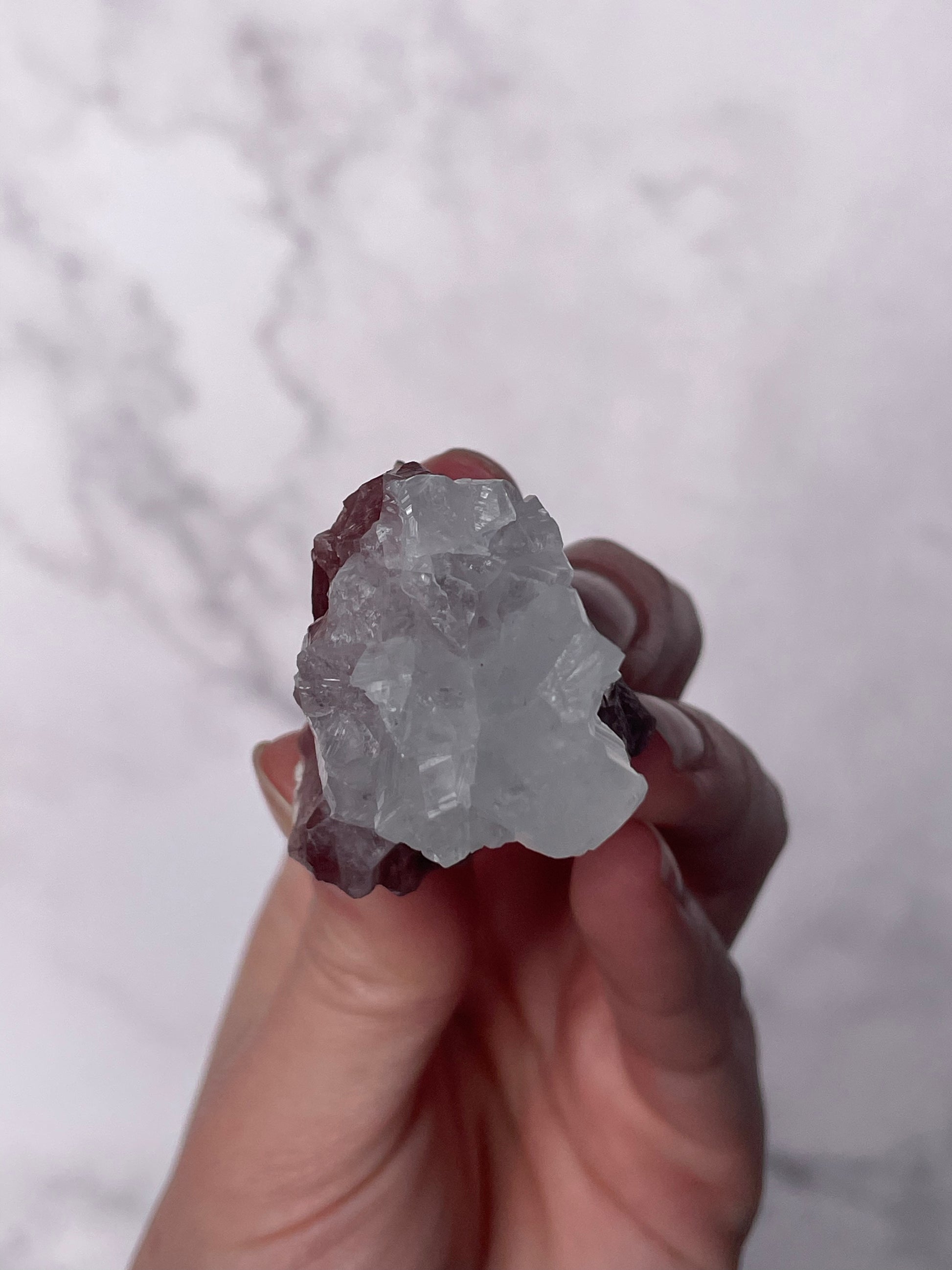 Handle gently, as Apophyllite is delicate and water-sensitive. Avoid soaking or harsh chemicals.