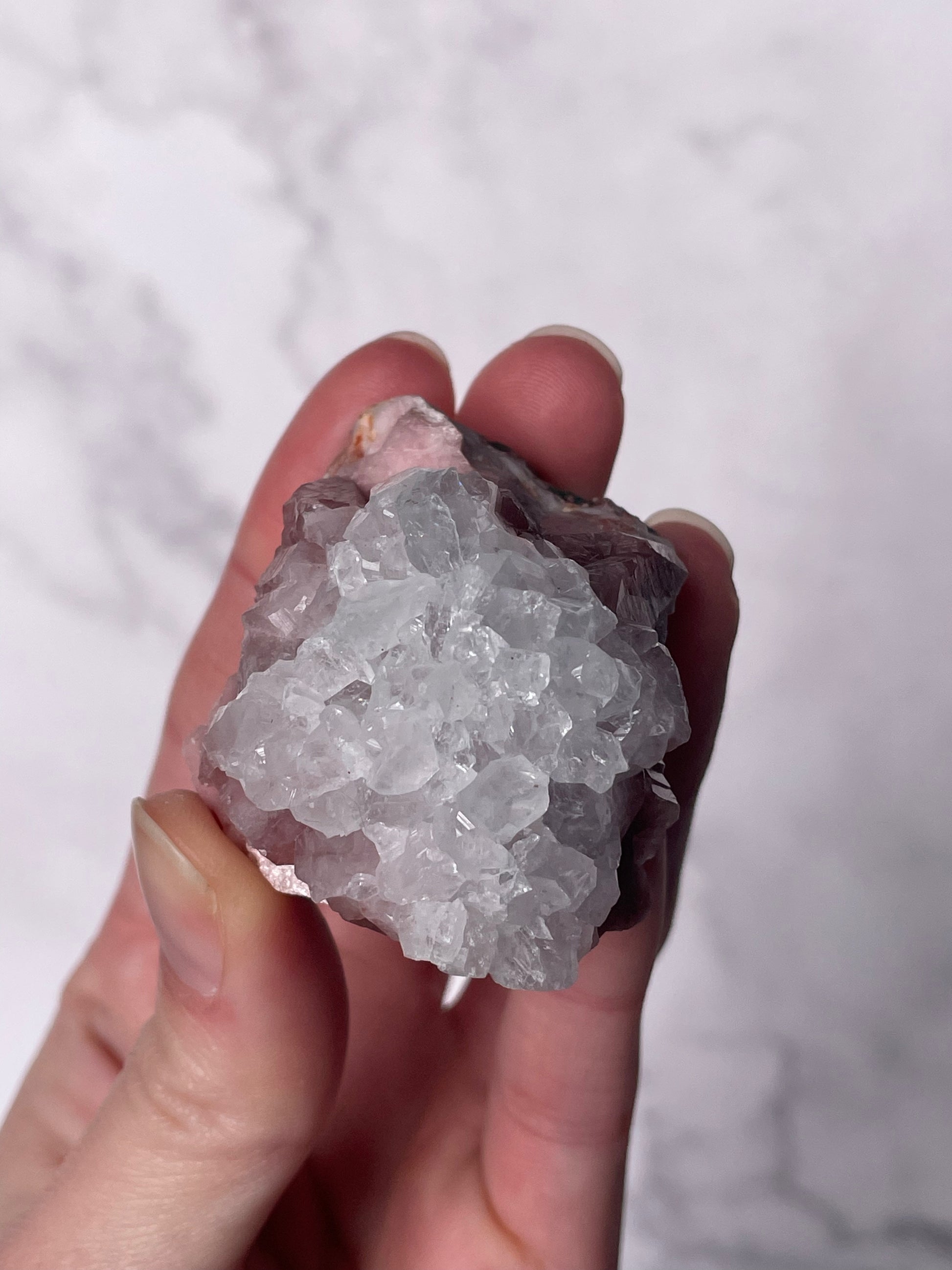 Handle gently, as Apophyllite is delicate and water-sensitive. Avoid soaking or harsh chemicals.