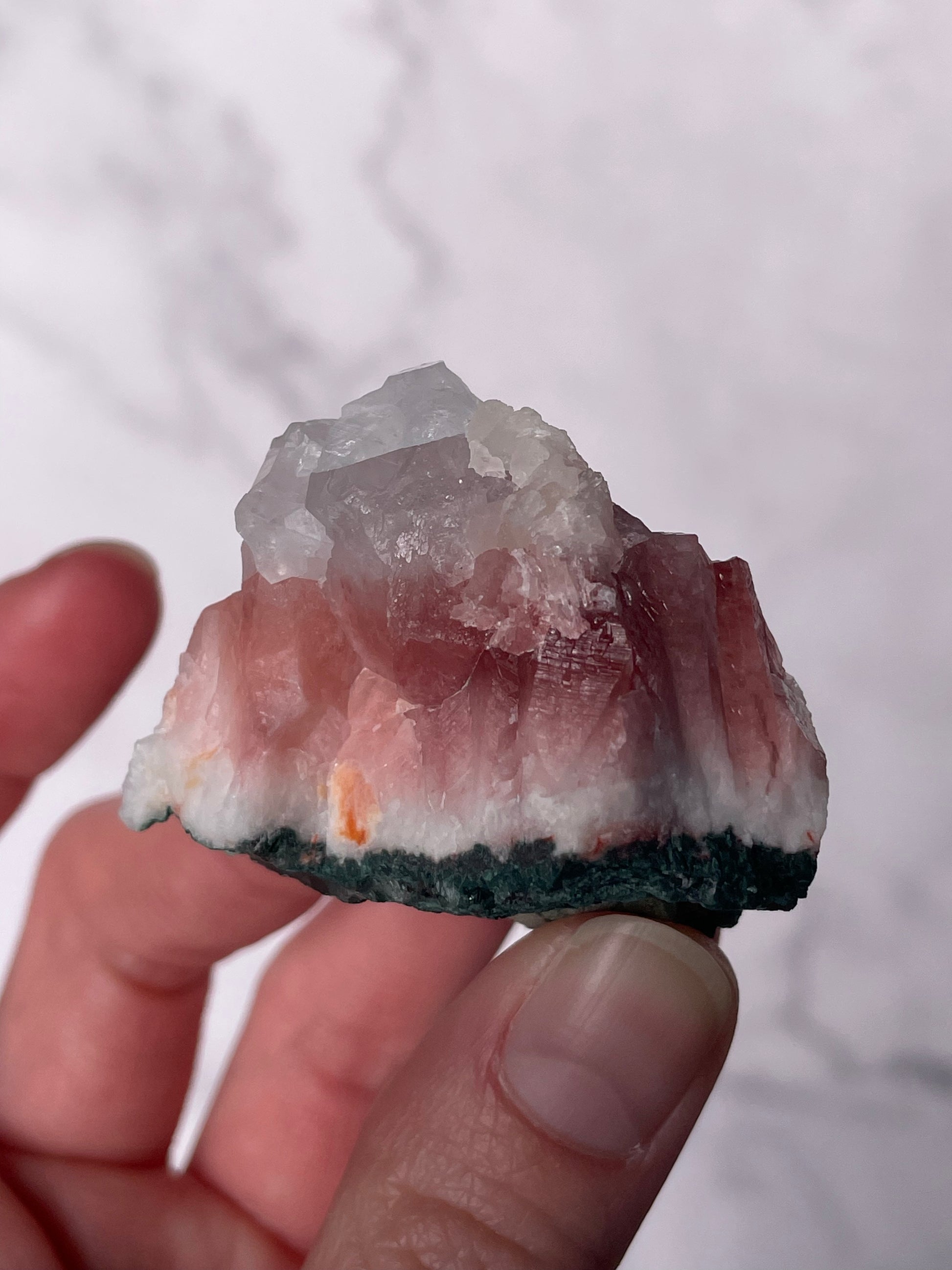 Sourced from India, Red Apophyllite forms within basalt matrix alongside other zeolite minerals. Indian Apophyllite is highly regarded for its exceptional crystal structure and strong energetic resonance, especially in heart and root chakra work.