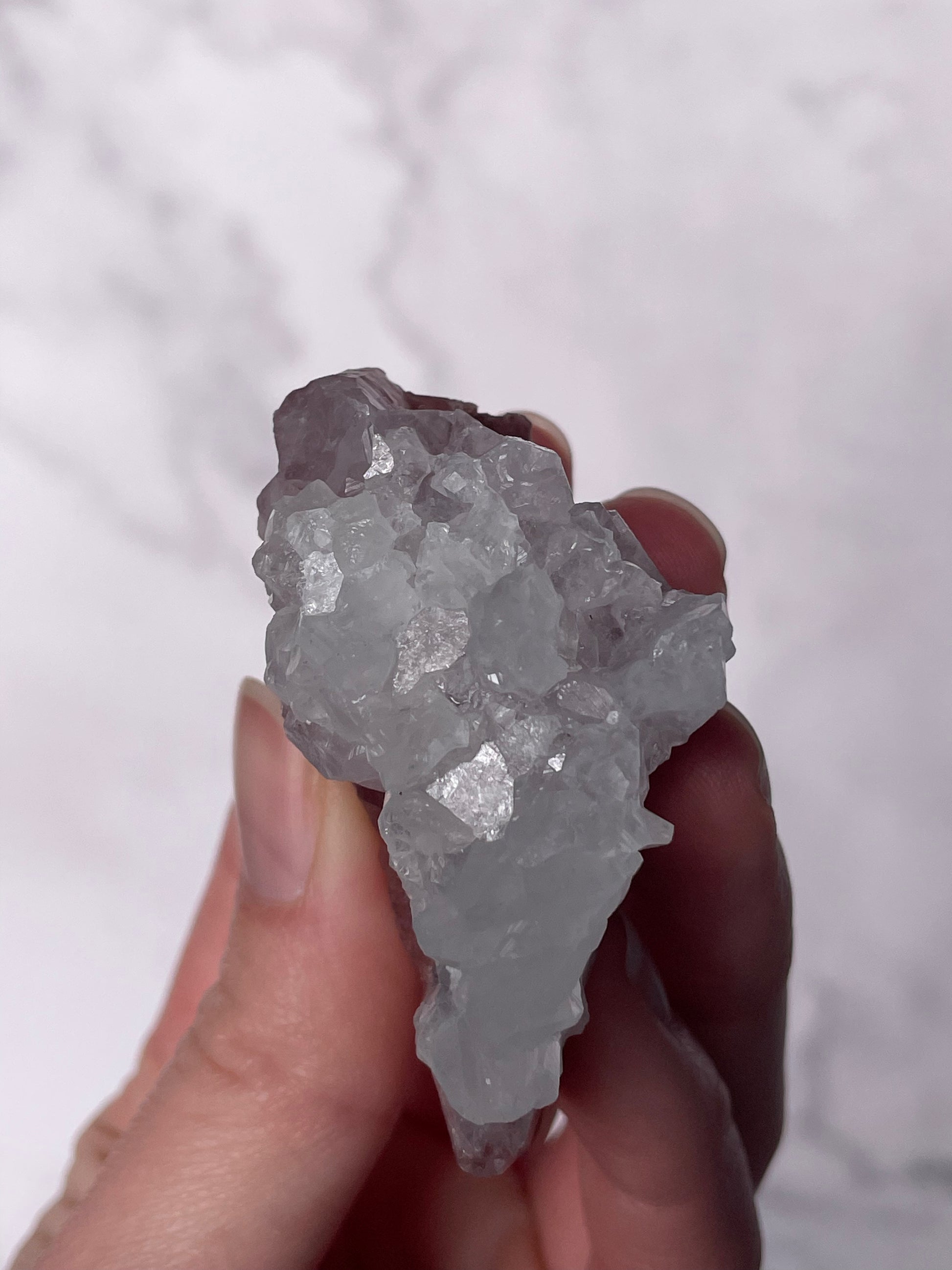 Handle gently, as Apophyllite is delicate and water-sensitive. Avoid soaking or harsh chemicals.