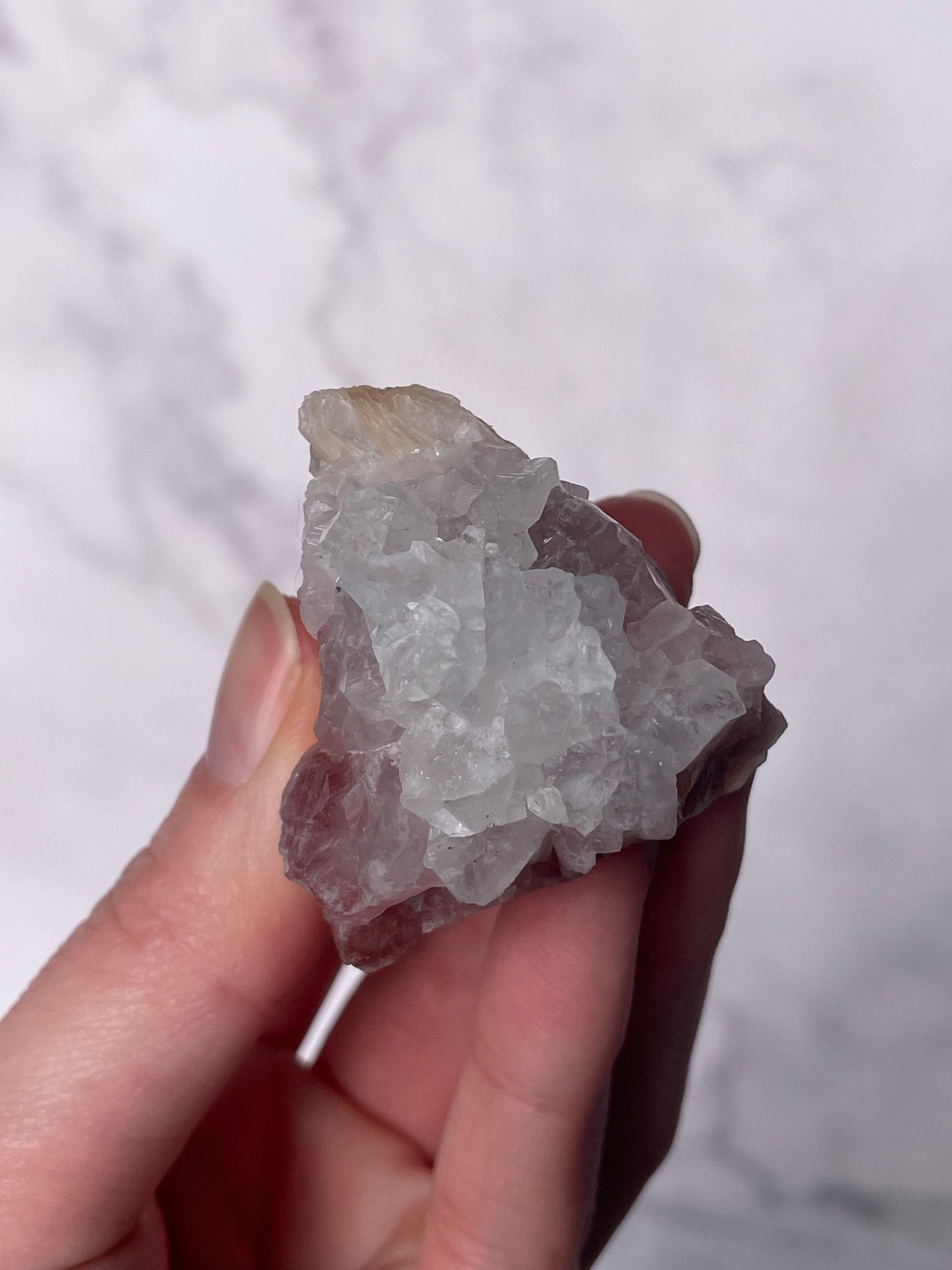 Handle gently, as Apophyllite is delicate and water-sensitive. Avoid soaking or harsh chemicals.