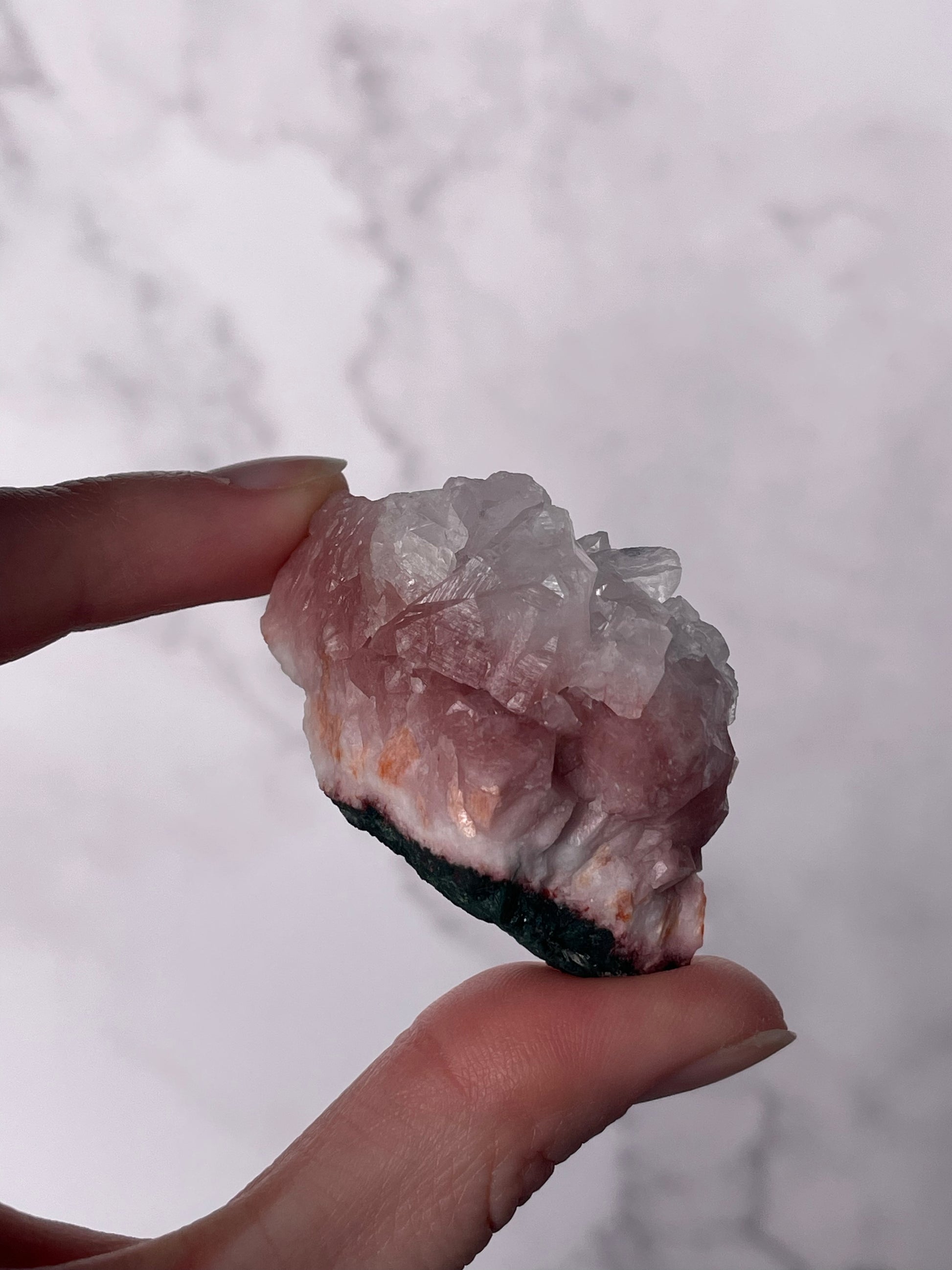 Sourced from India, Red Apophyllite forms within basalt matrix alongside other zeolite minerals. Indian Apophyllite is highly regarded for its exceptional crystal structure and strong energetic resonance, especially in heart and root chakra work.