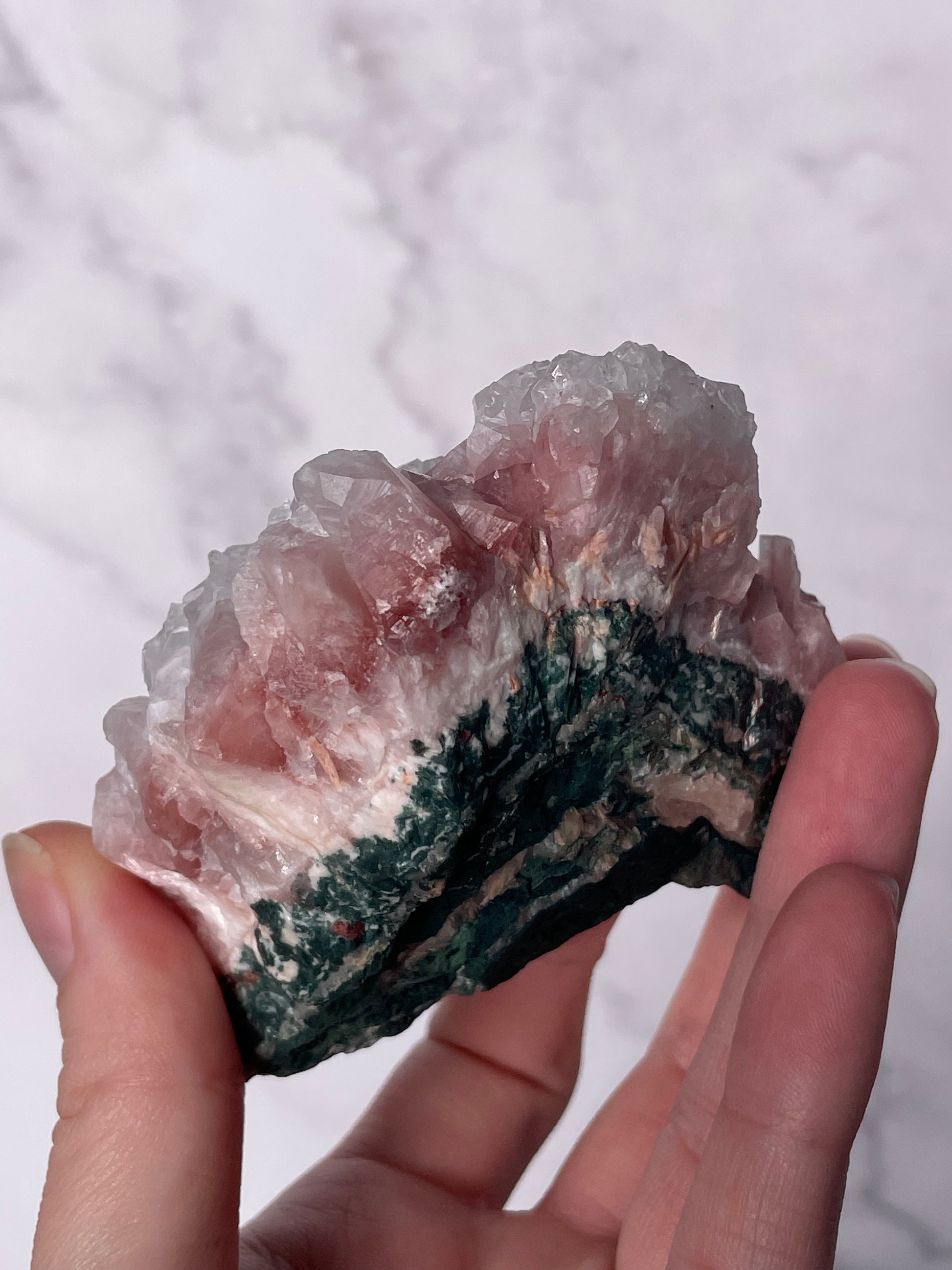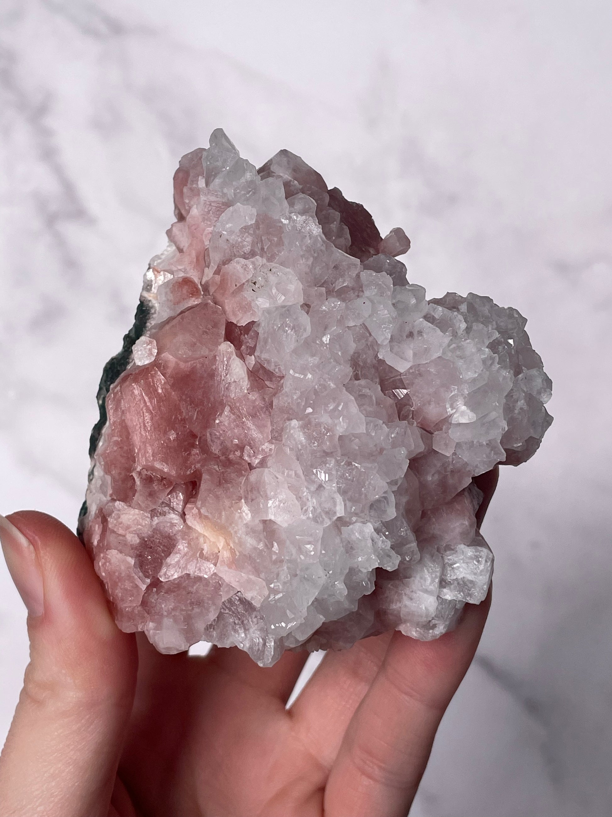 Sourced from India, Red Apophyllite forms within basalt matrix alongside other zeolite minerals. Indian Apophyllite is highly regarded for its exceptional crystal structure and strong energetic resonance, especially in heart and root chakra work.