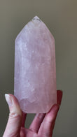Soft pink hues with a gentle, translucent glow. Polished into spheres, towers, or tumbled stones.