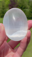 Do not submerge in water as selenite dissolves. Dust gently with a dry cloth. Cleansing methods: moonlight, sound vibration, or simply self-cleansing (selenite naturally clears energy).