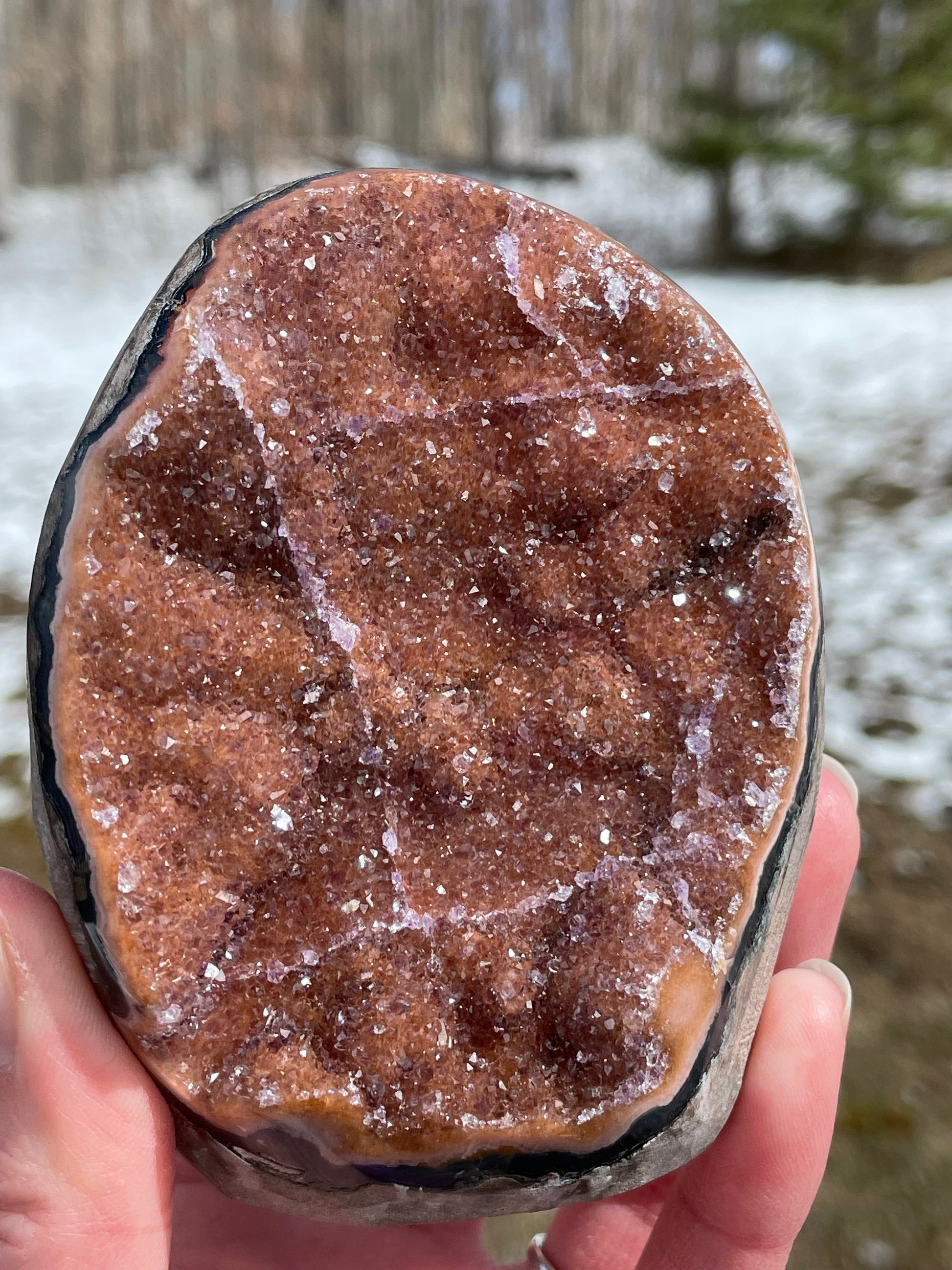 Found in Brazil and other amethyst-rich regions, this unique variety often forms when natural fractures reflect light or when tiny inclusions create an iridescent play of color. Throughout history, amethyst has symbolized wisdom and spiritual clarity, and the rainbow effect amplifies its uplifting energy.